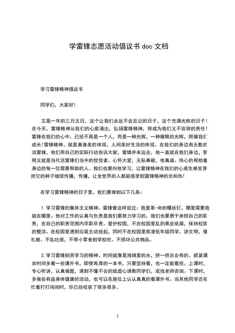 学习雷锋精神倡议书
