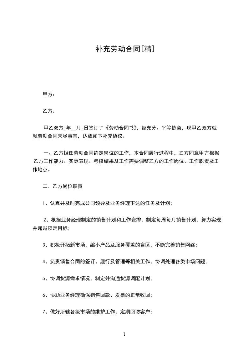 六、本补充协议一式两份,甲、乙双方各执一份,经双方签字盖章后生效。