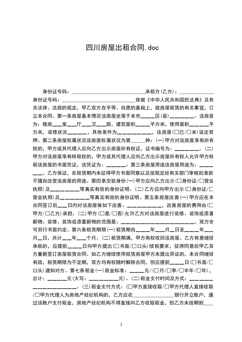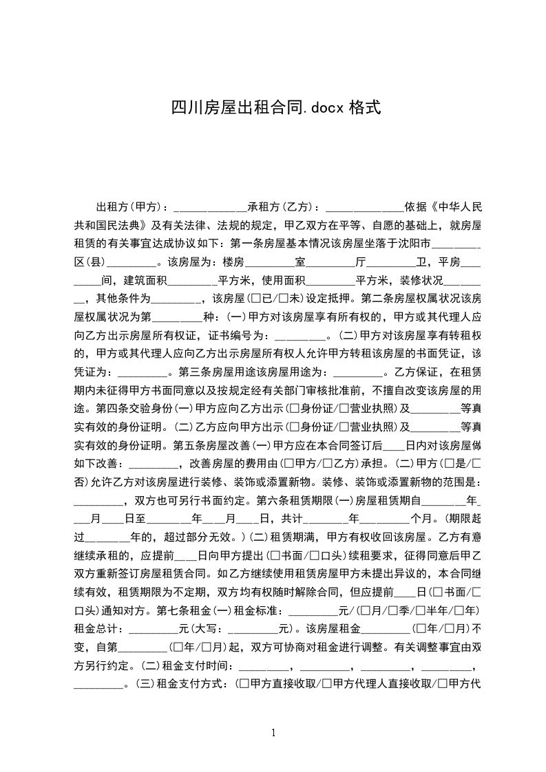 (二)租赁期满,甲方有权收回该房屋。乙方有意继续承租的,应提前____日向甲方提出(□书面/□口头)续租要求,征得同意后甲乙双方重新签订房屋租赁合同。如乙方继续使用租赁房屋甲方未提出异议的,本合同继续有效,租赁期限为不定期,双方均有权随时解除合同,但应提前____日(□书面/□口头)通知对方。