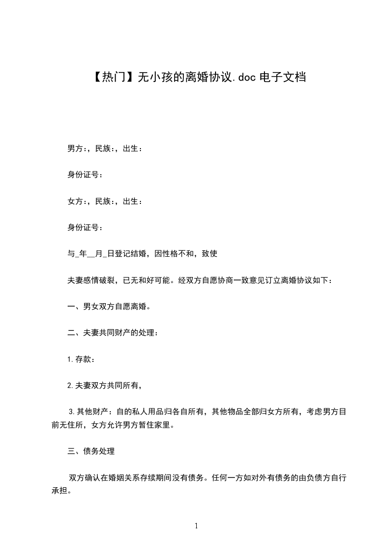 男女双方____年__月__日在区人民政府办理结婚登记手续。因双方性格不合无法共同生活,夫妻感情已完全破裂,现双方就自愿离婚一事达成如下协议: