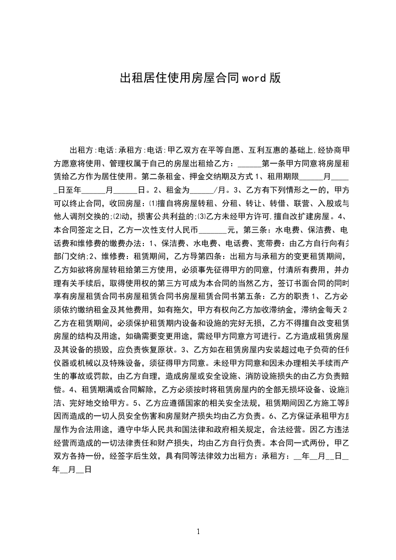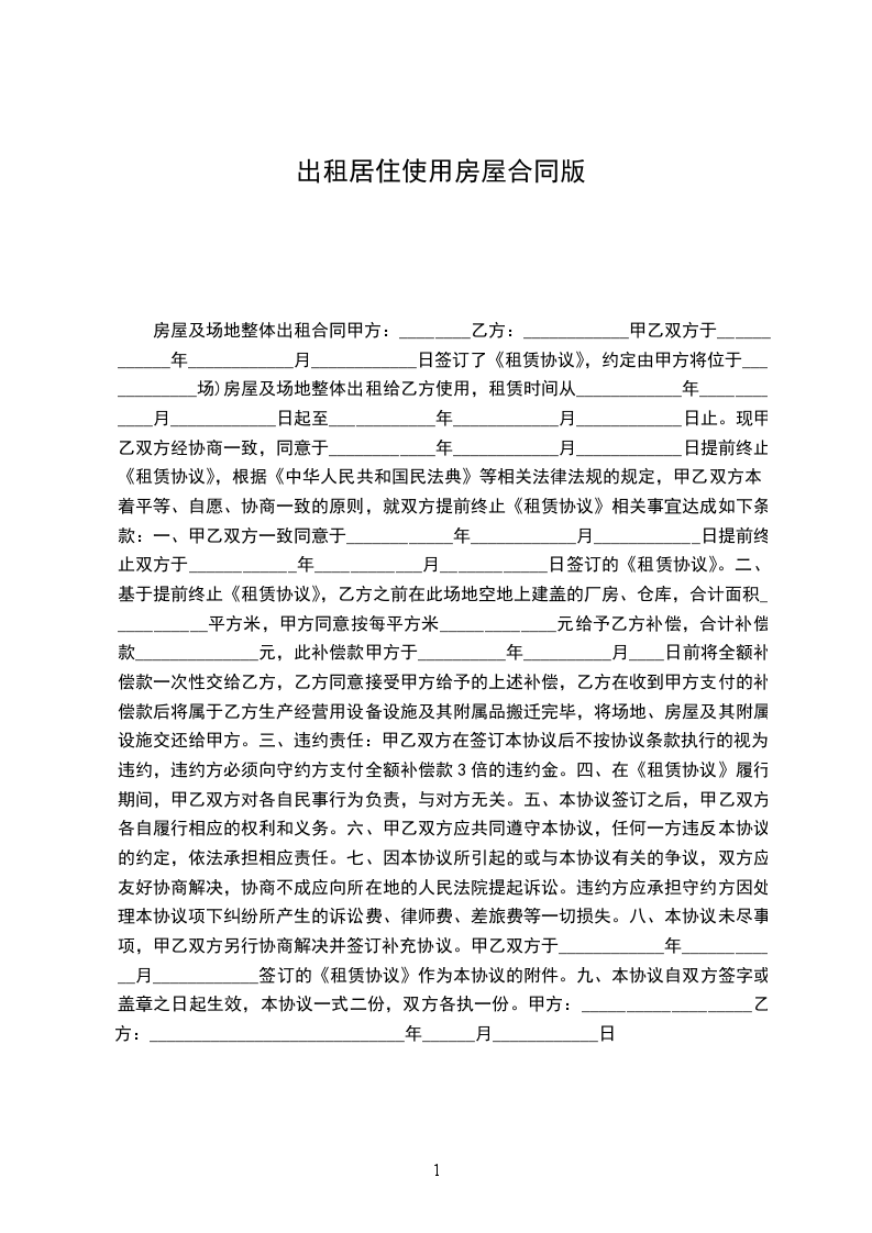 经双方协商甲方将位于房屋出租给乙方居住使用。