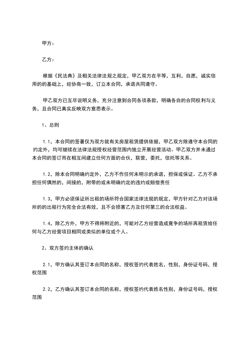 第一条:租赁范围及用途
