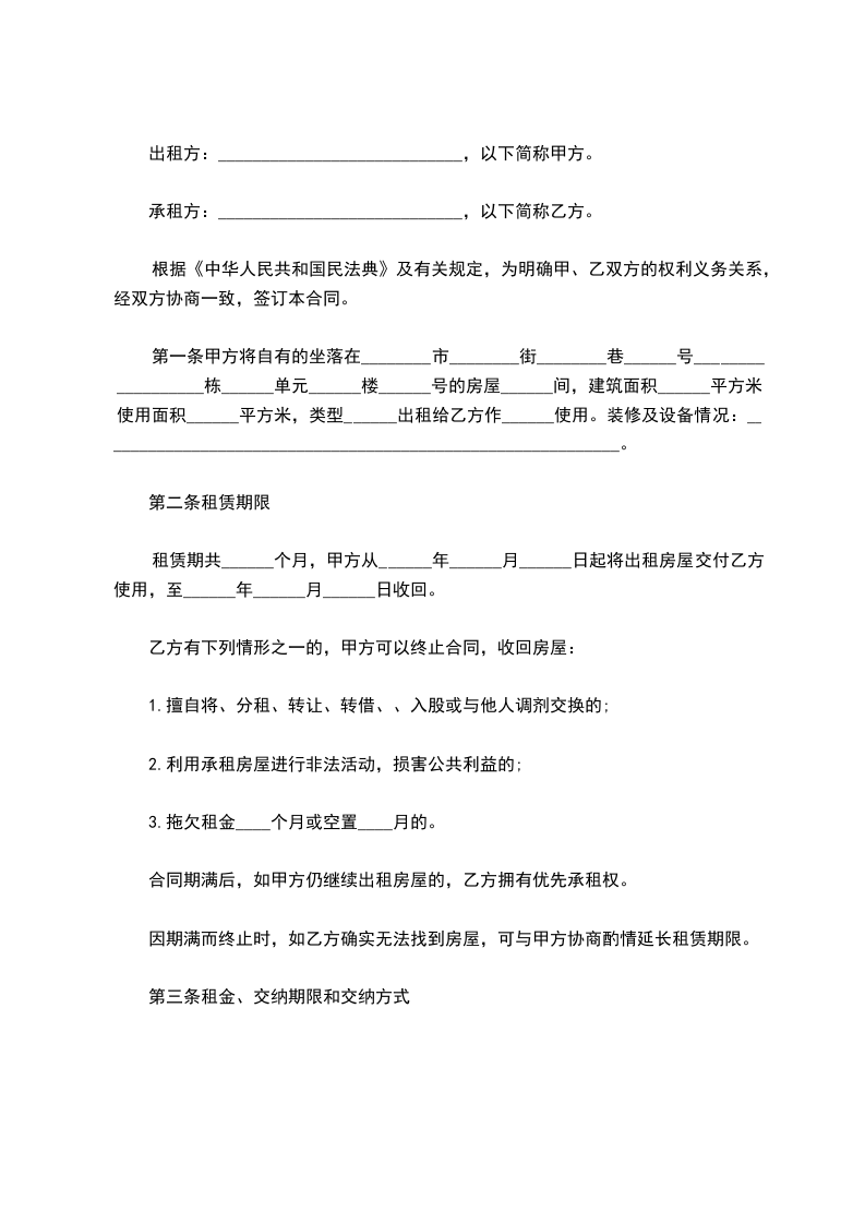 1、租赁期自____年_____月_____日起至_____年_____月_____日止。