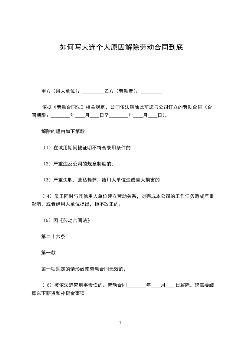 (6)被依法追究刑事责任的。劳动合同________年____月____日解除。您需要结算以下薪资和补偿金事项: