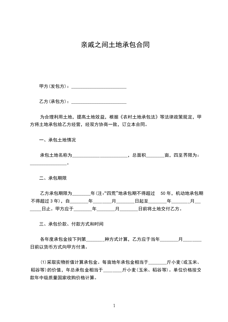 4、本合同一式份,双方各执一份,报乡镇农村土地承包管理机构备案一份。