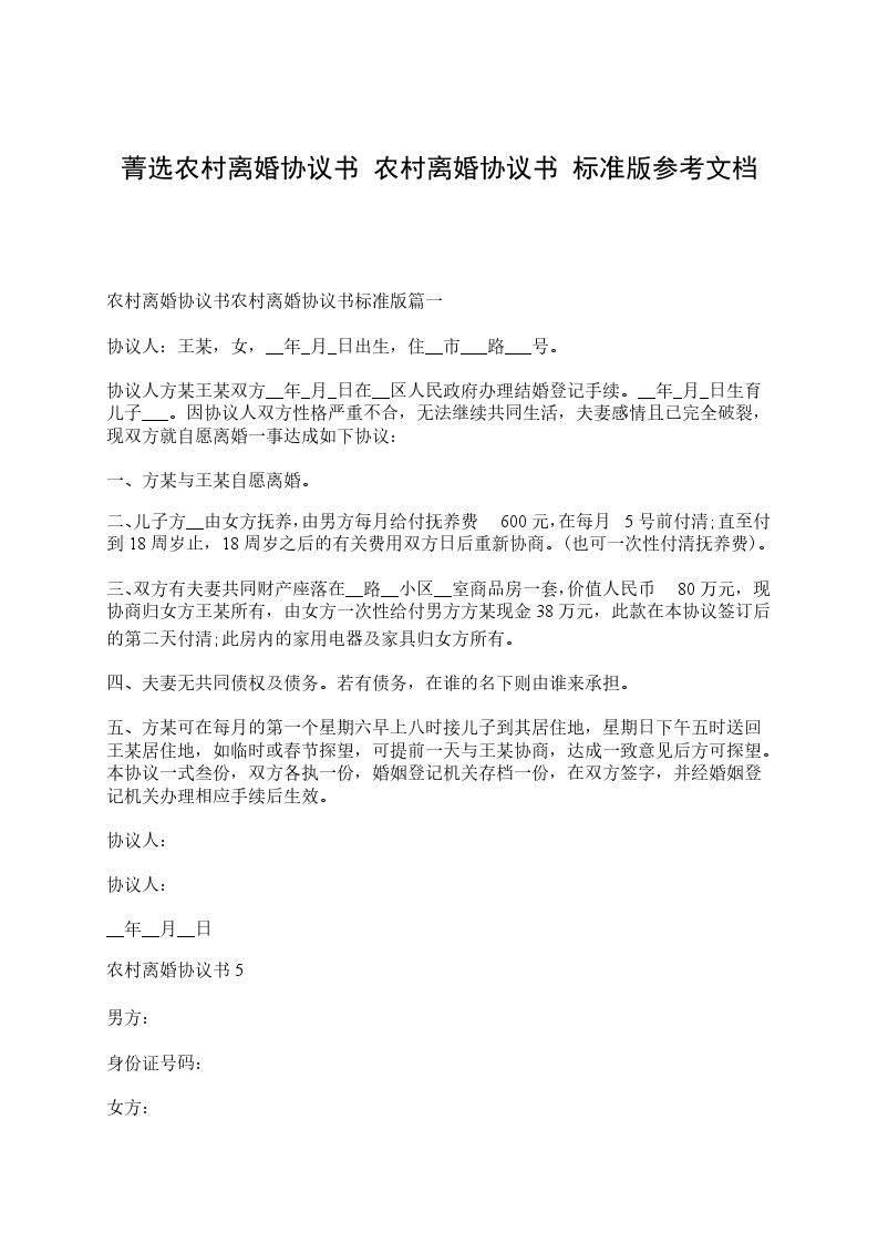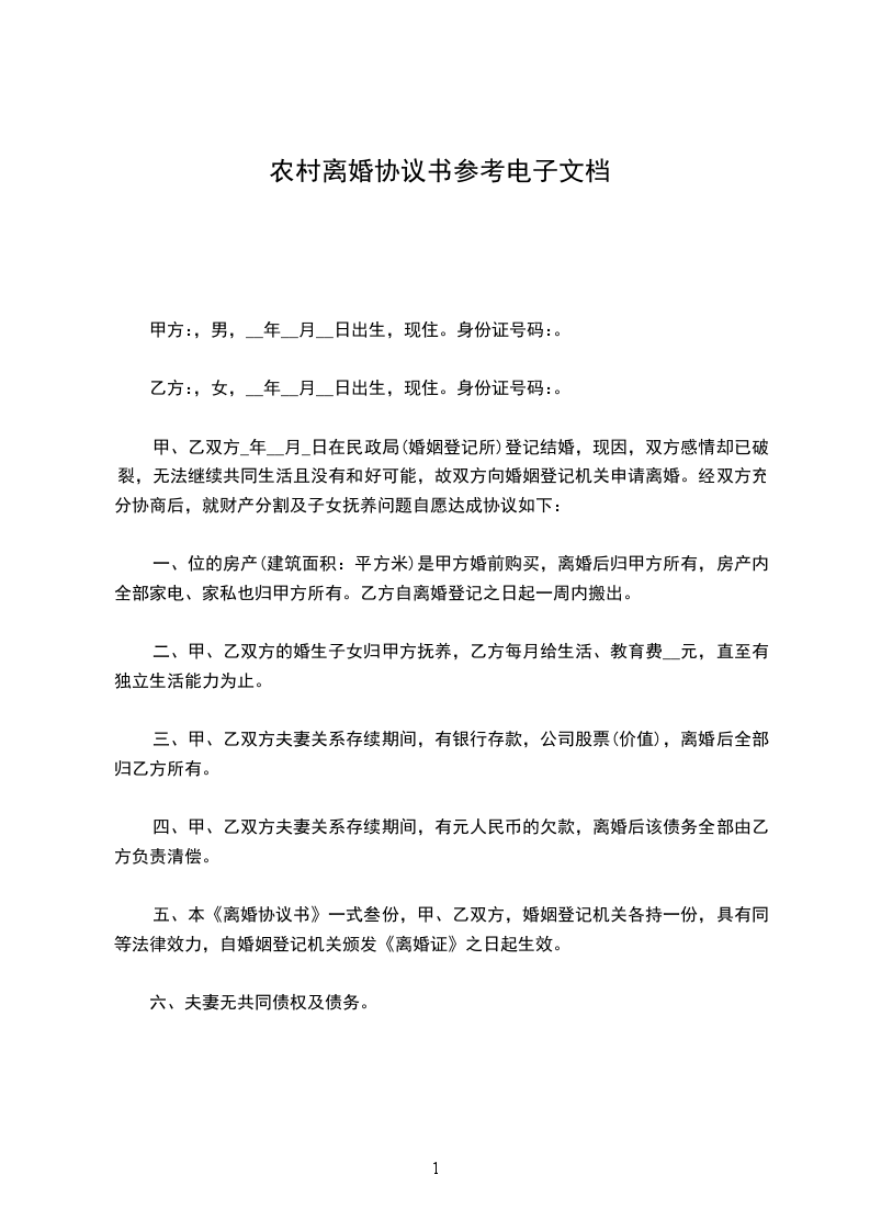 乙方:,女,__年_月_日出生,汉族,农民,住__省__市__镇__村。