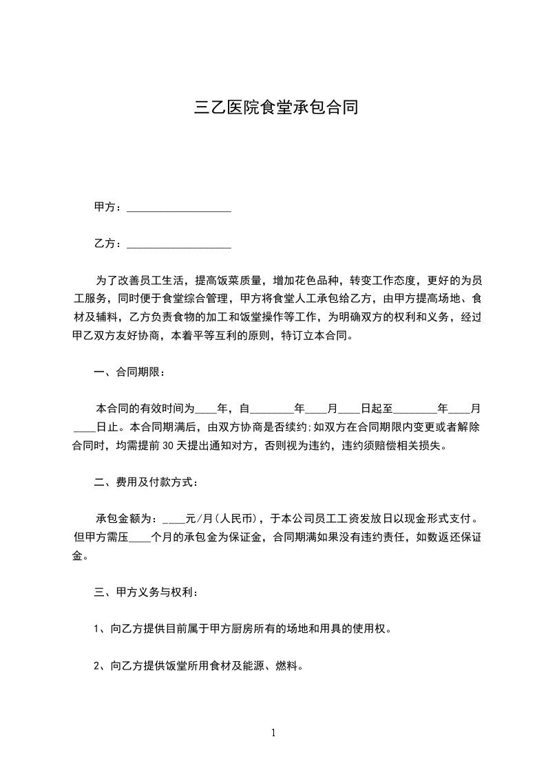 为了改善员工生活,提高饭菜质量,增加花色品种,转变工作态度,更好的为员工服务,同时便于食堂综合管理,甲方将食堂人工承包给乙方,由甲方提高场地、食材及辅料,乙方负责食物的加工和饭堂操作等工作,为明确双方的权利和义务,经过甲乙双方友好协商,本着平等互利的原则,特订立本合同。