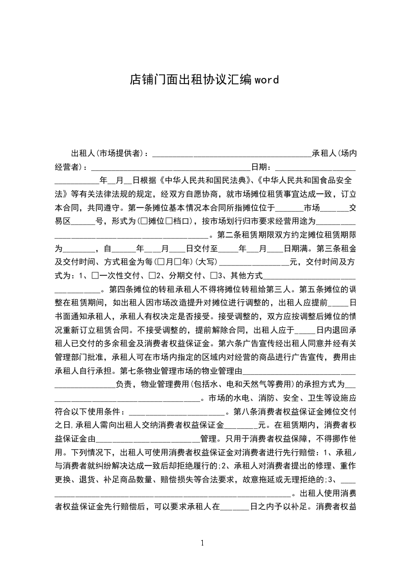 本出租协议的租赁保证金为首月租金的_______倍,即人民币___________元(大写:___________)。