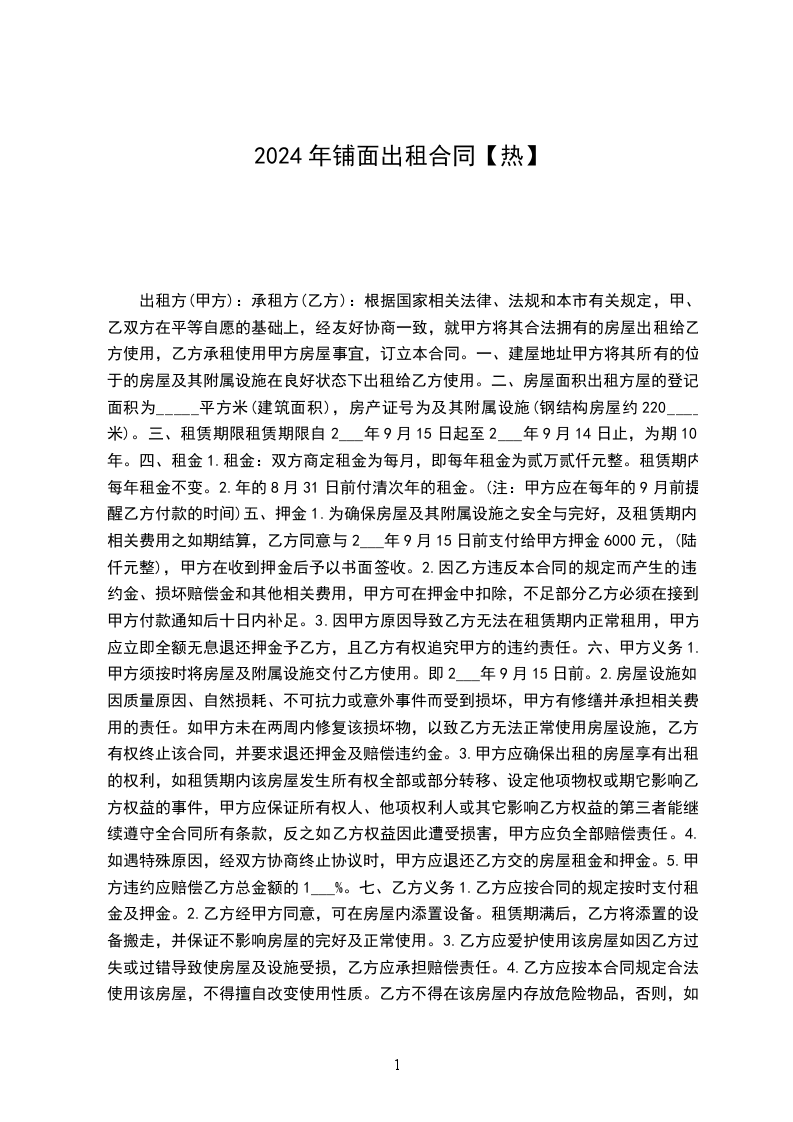 2.年的8月31日前付清次年的租金。(注:甲方应在每年的9月前提醒乙方付款的时间)