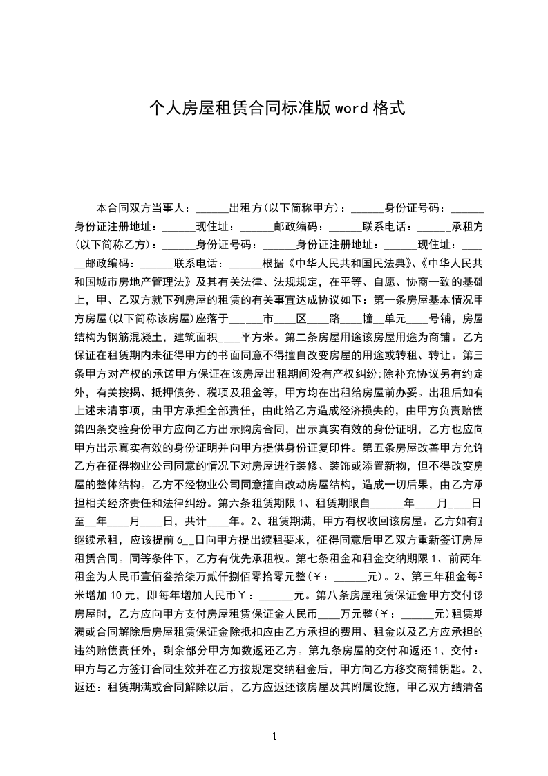 一、甲方将位于湖南省永州市____________________________号的三楼房屋出租给乙方居住使用,租赁期限自2___年7月17日至2___年7月17日,计12个月。