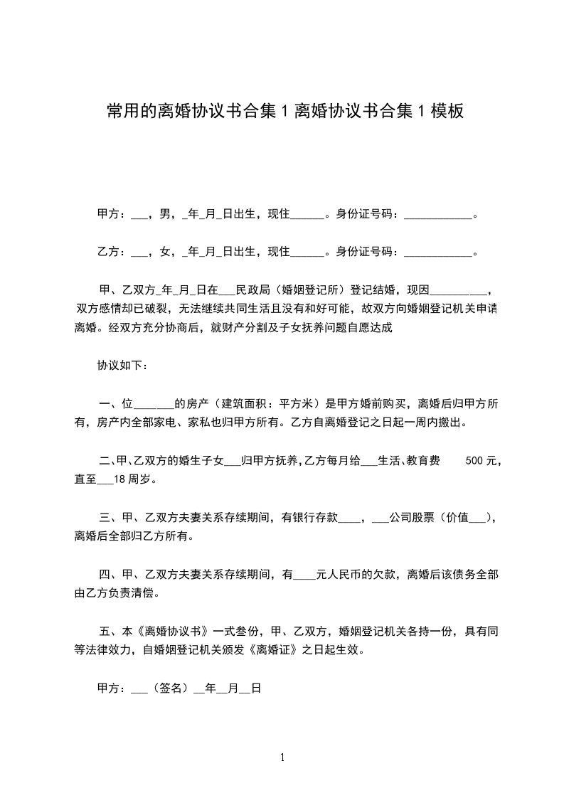 五、本《离婚协议书》一式叁份,甲、乙双方,婚姻登记机关各持一份,具有同等法律效力,自婚姻登记机关颁发《离婚证》之日起生效。