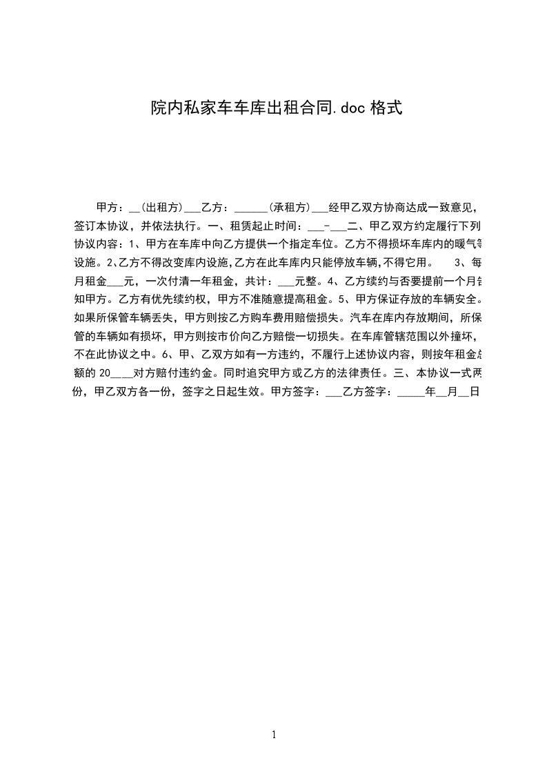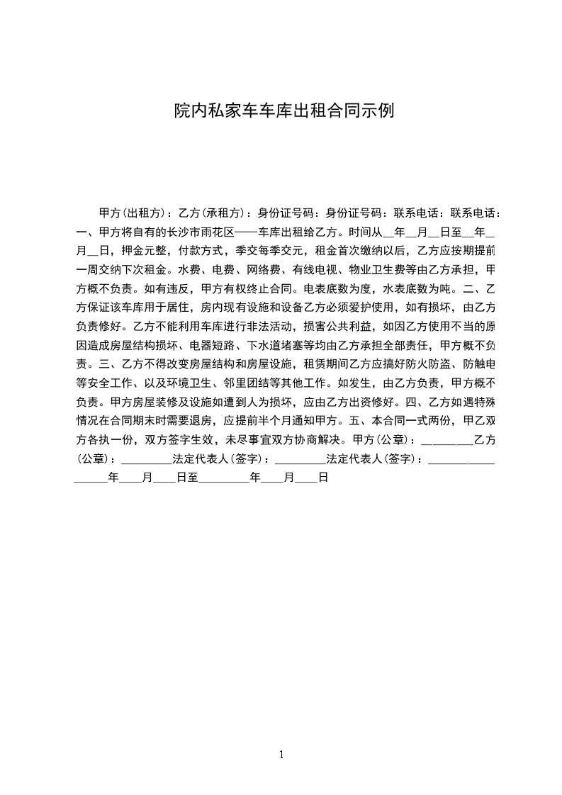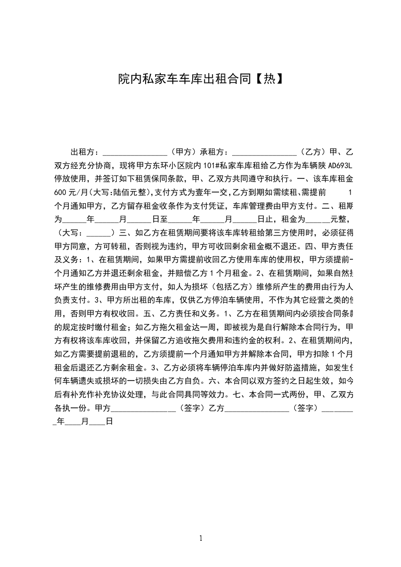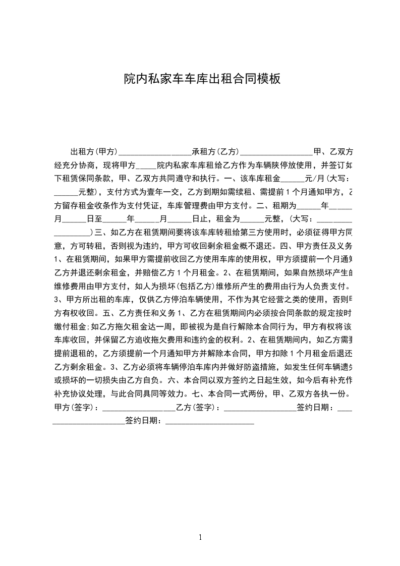 1、甲方在车库中向乙方提供一个指定车位。乙方不得损坏车库内的暖气等设施。