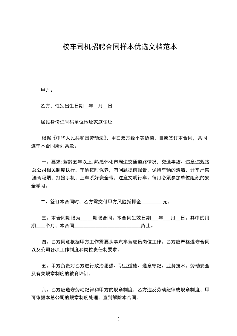 第一条本合同生效日期___年___月__日到租车合同终止,其中试用期1个月。第二条乙方同意根据甲方工作需要从事汽车驾驶员岗位工作。乙方应严格遵守合同以及单位各项工作制度和岗位责任制要求。