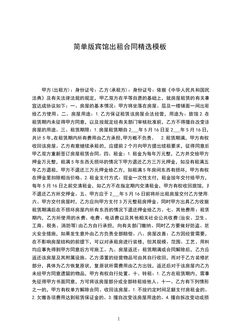 1.乙方保证租赁该房屋合法经营,用途为:旅馆