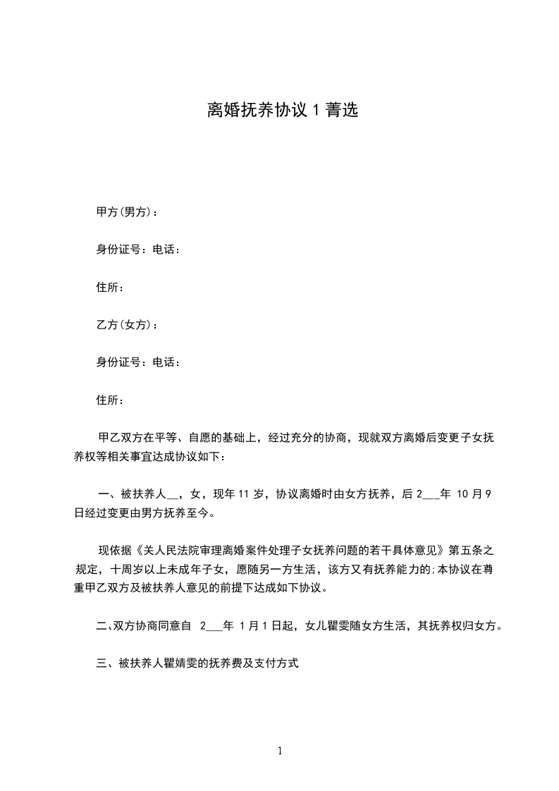 一、被扶养人__,女,现年11岁,协议离婚时由女方抚养,后2___年 10月9日经过变更由男方抚养至今。