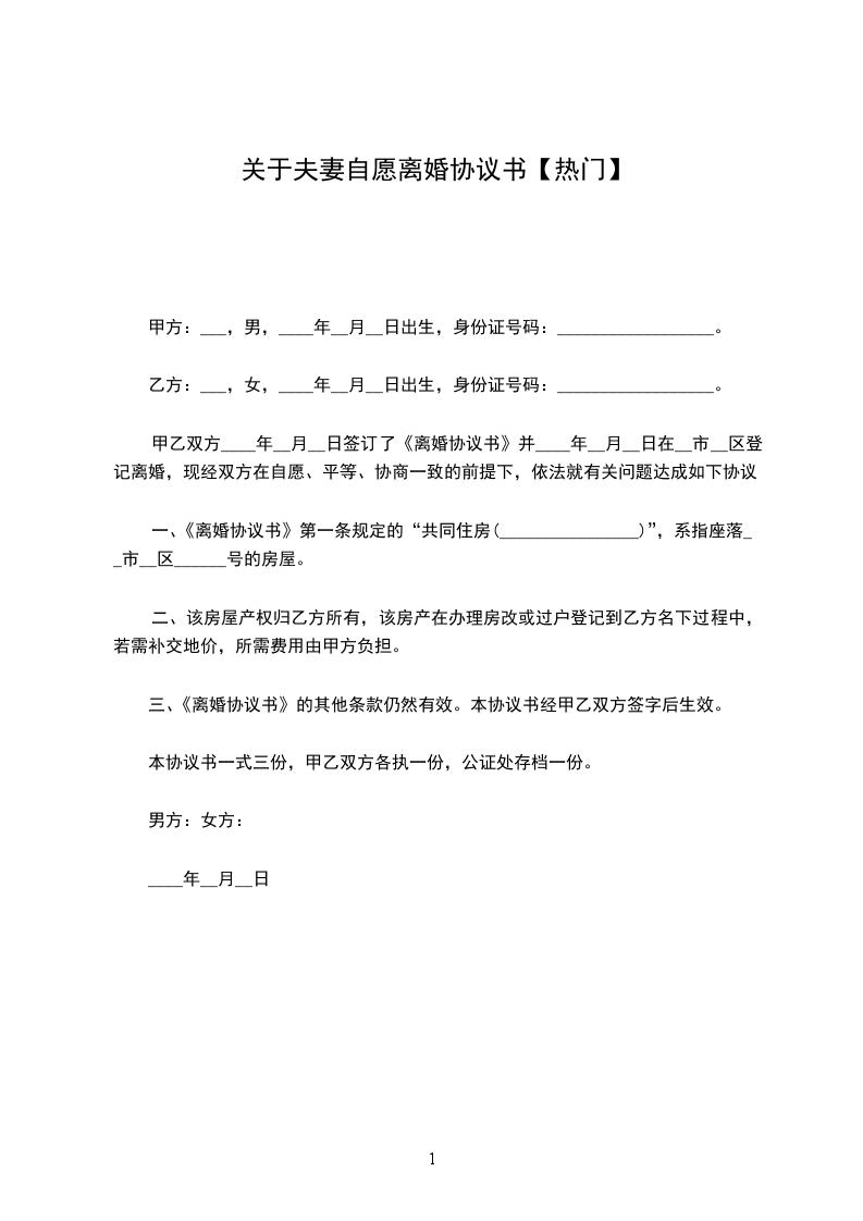 一、《离婚协议书》第一条规定的“共同住房(________________)”,系指座落__市__区______号的房屋。