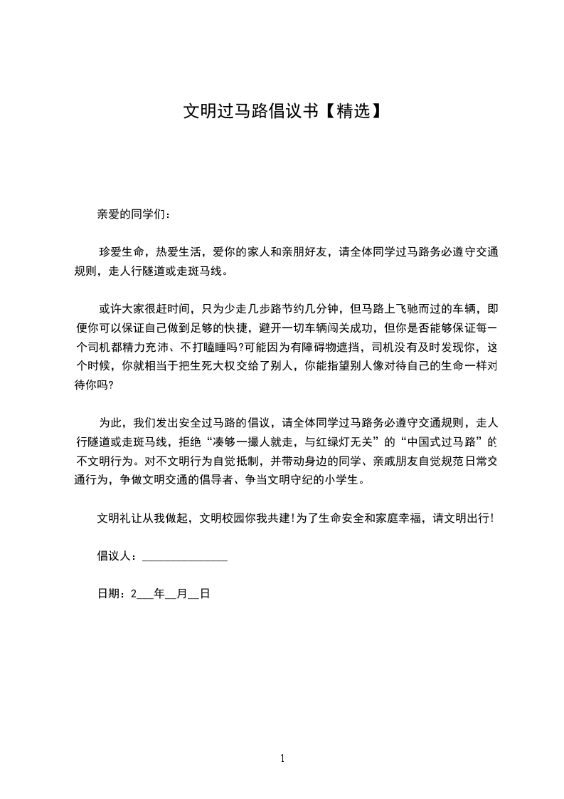 亲爱的同学们,为了大家免受意外伤害,我们在此特发出安全倡议: