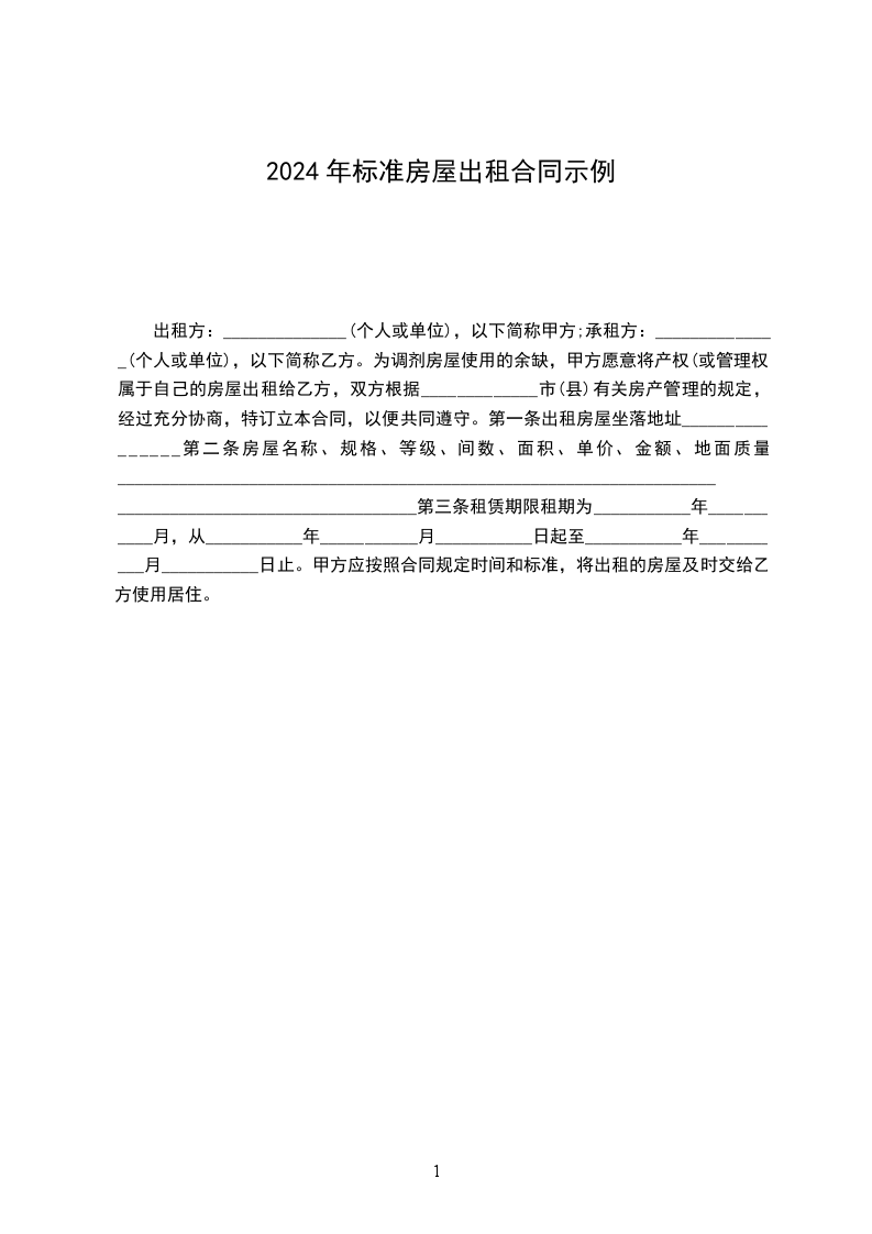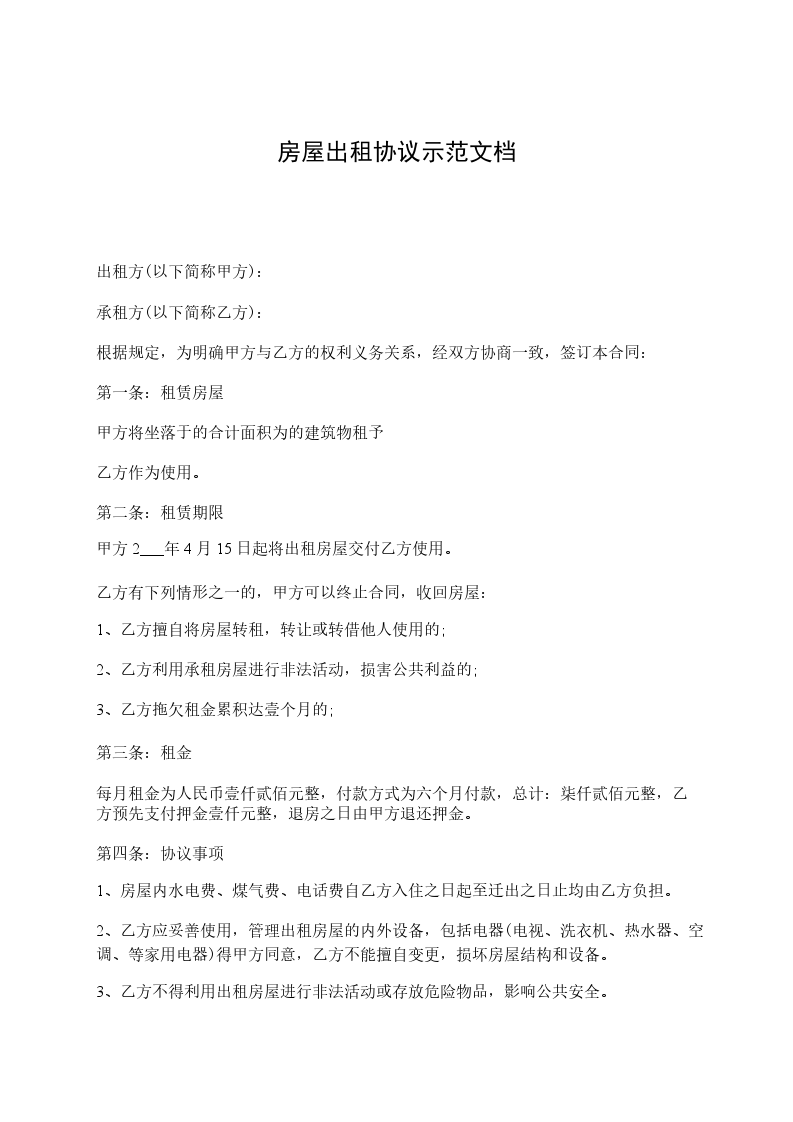 篇2房屋出租合同的范例