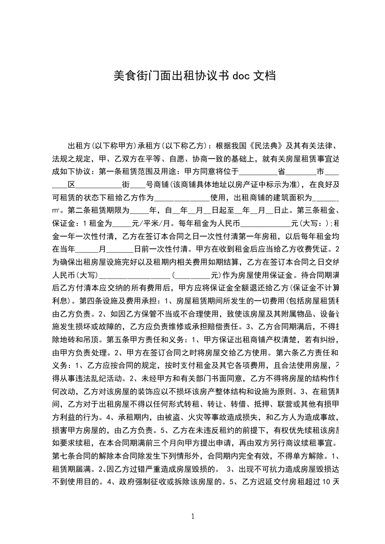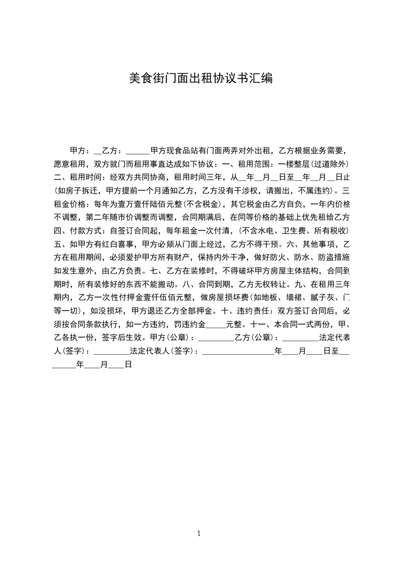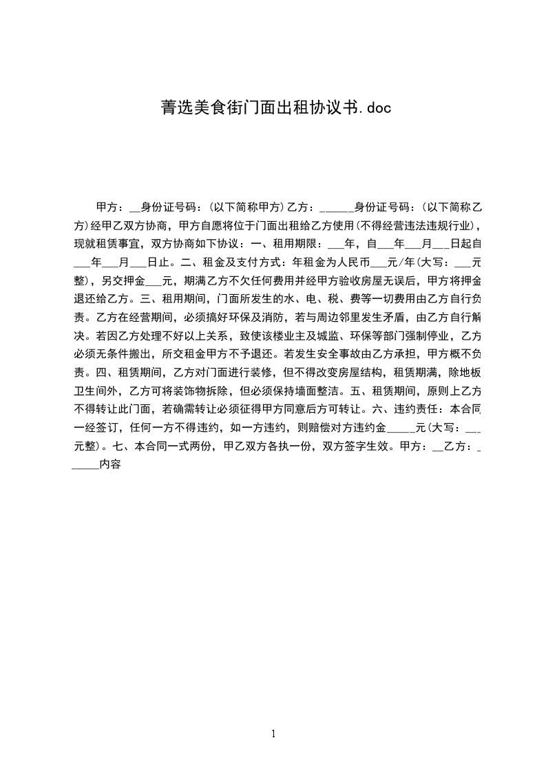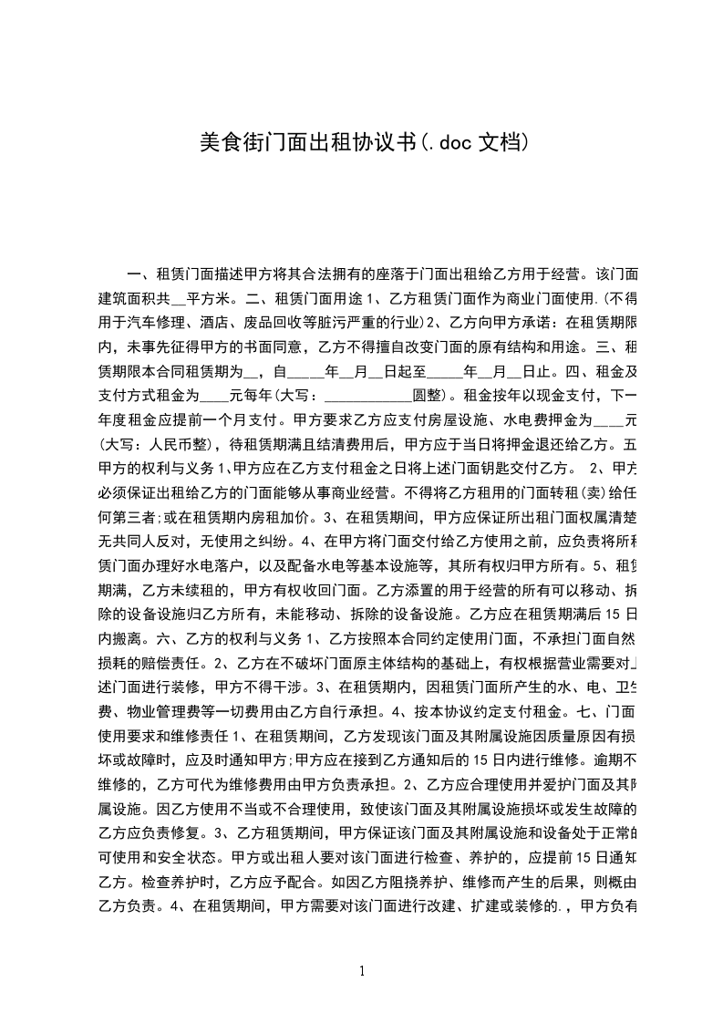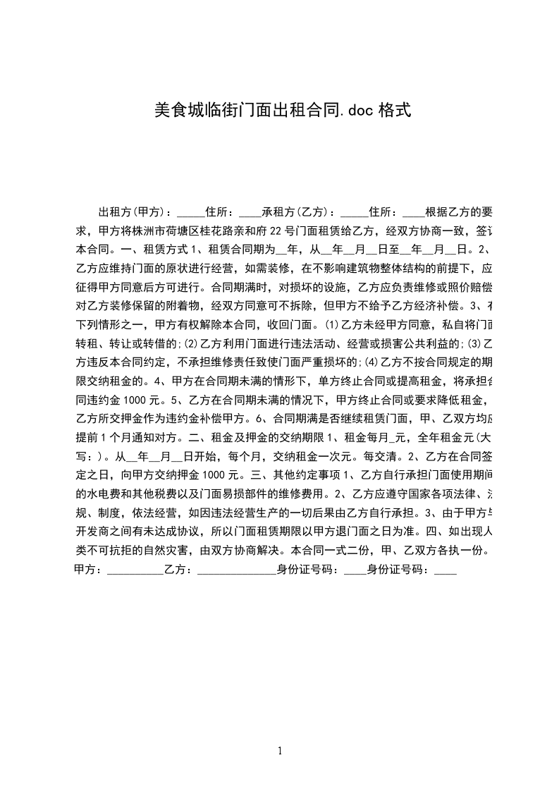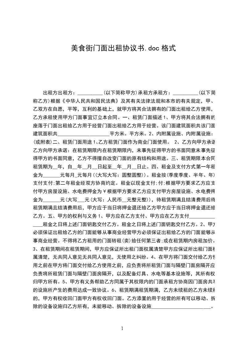 一、租赁门面描述甲方将其合法拥有的座落于门面出租给乙方用于经营。