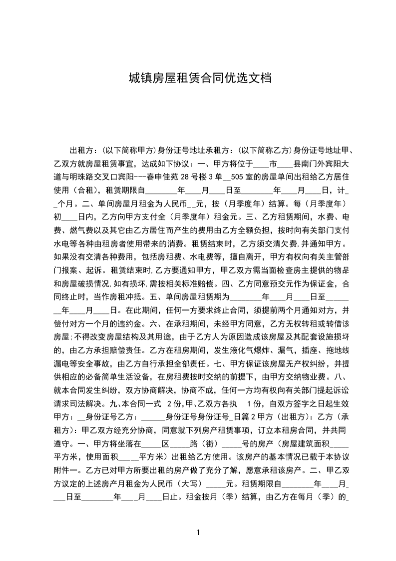 一、甲方将位于____市____县南门外宾阳大道与明珠路交叉口宾阳---春申佳苑28号楼3单__505室的房屋单间出租给乙方居住使用(合租),租赁期限自________年____月____日至________年____月____日,计__个月。