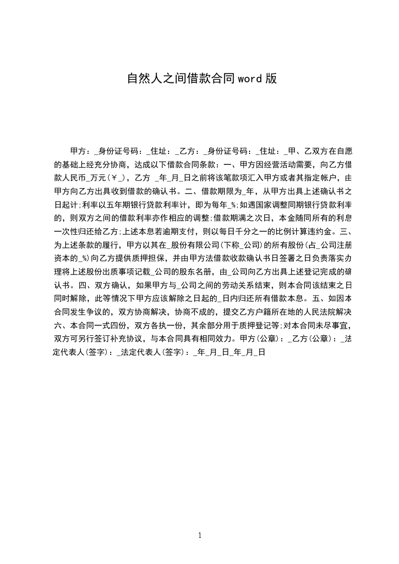 甲方(借款人)______________,身份证号码:_____________________________