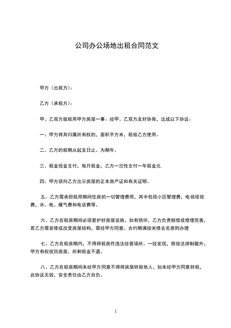 三、租金现金支付,每月租金,乙方一次性支付一年租金元.