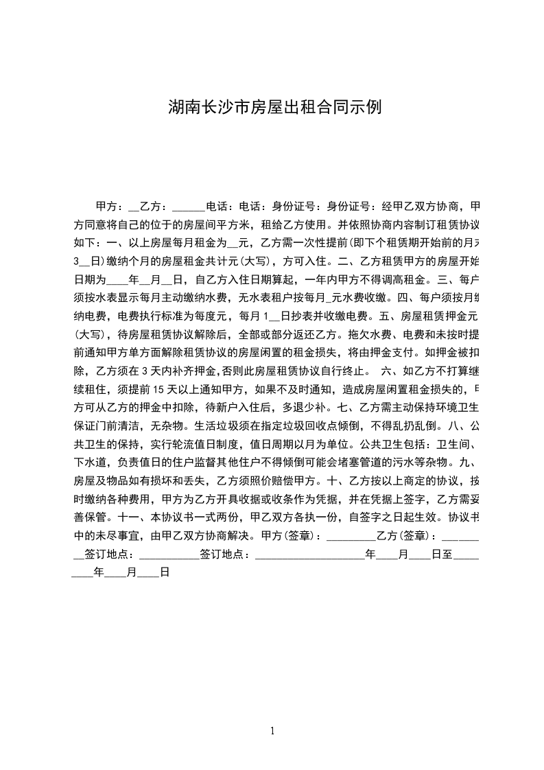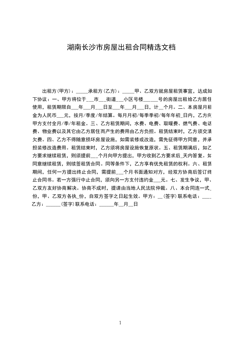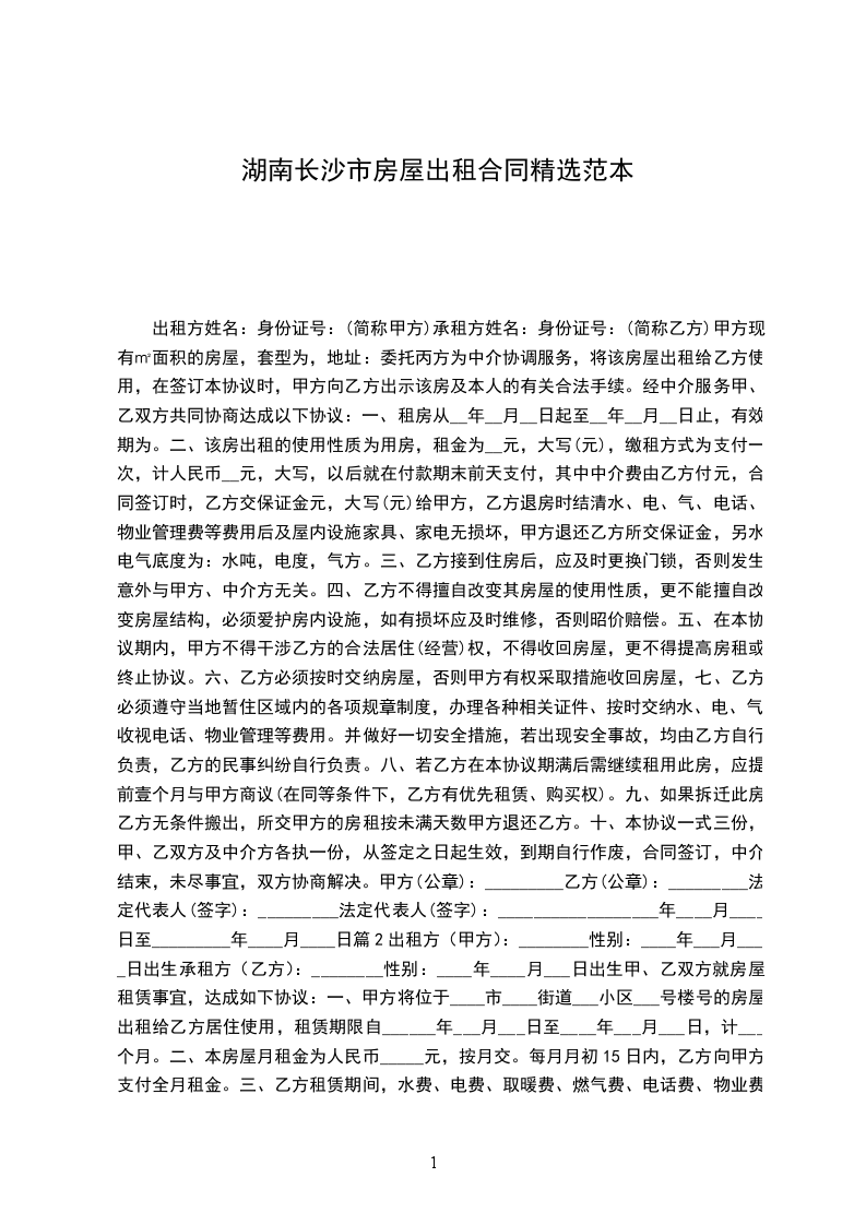 篇3甲方:_________(出租人)乙方:_____________(承租人)双方经友好协商,根据国家、当地政府对房屋租赁的有关规定,就租赁房屋一事达成以下协议。