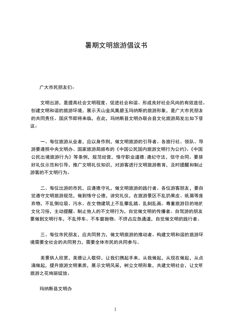 文明出游,是提高社会文明程度、促进社会和谐、形成良好社会风尚的有效途径。创建文明和谐的旅游环境,展示天山金凤凰碧玉玛纳斯的旅游形象,是广大市民朋友的共同责任。国庆节即将来临,在此,玛纳斯县文明办联合县文化旅游局发出如下倡议: