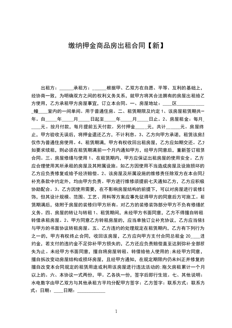2、房屋租金:每月_____元。按月付款,每月提前五天付款。另付押金_____元,共计______元。