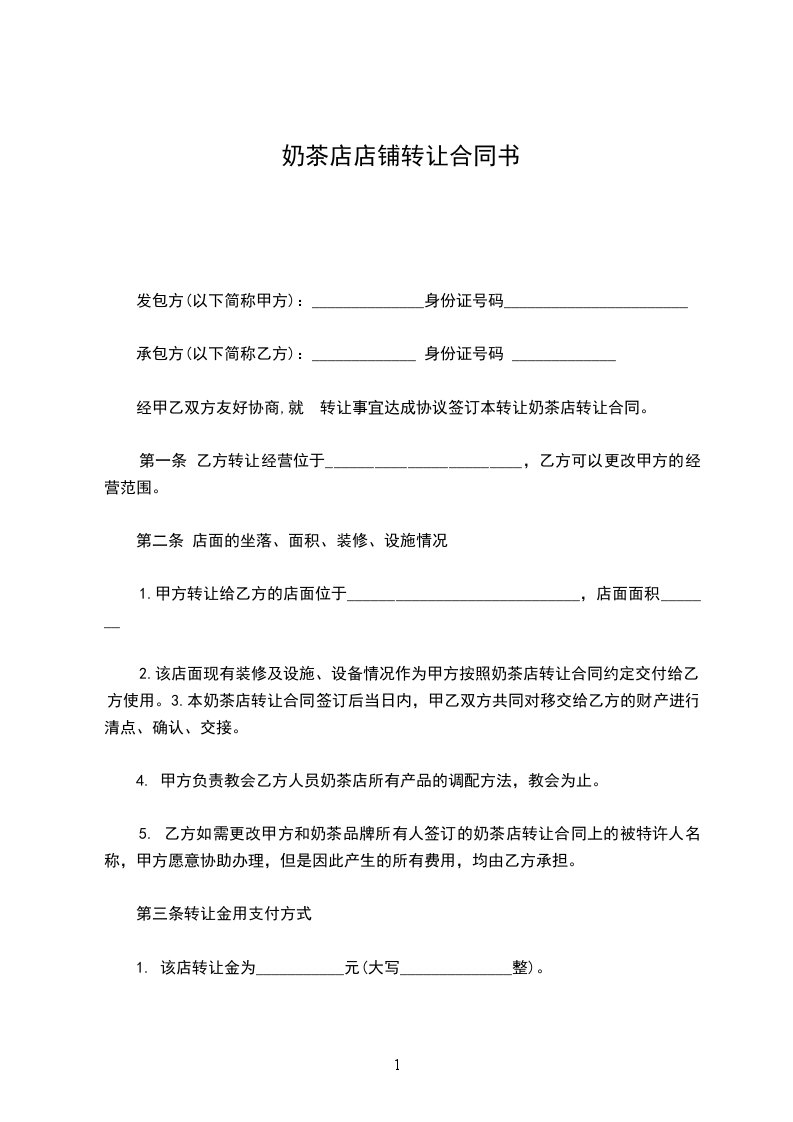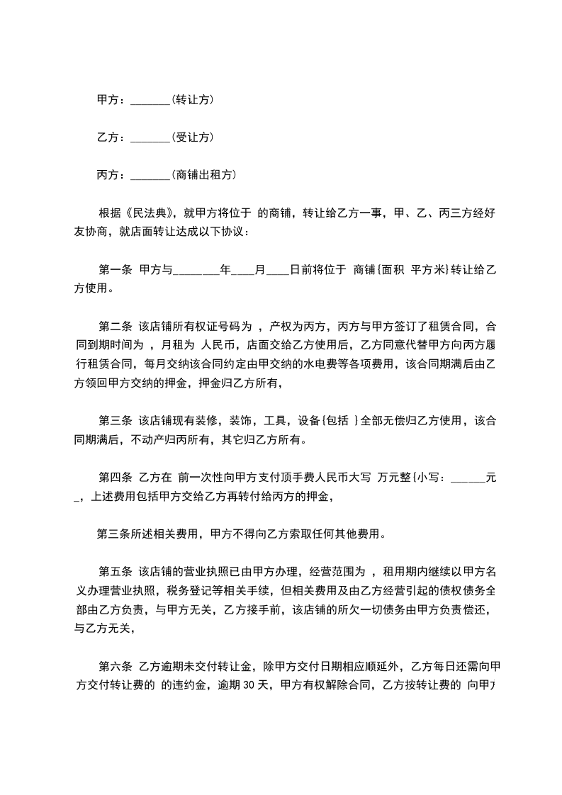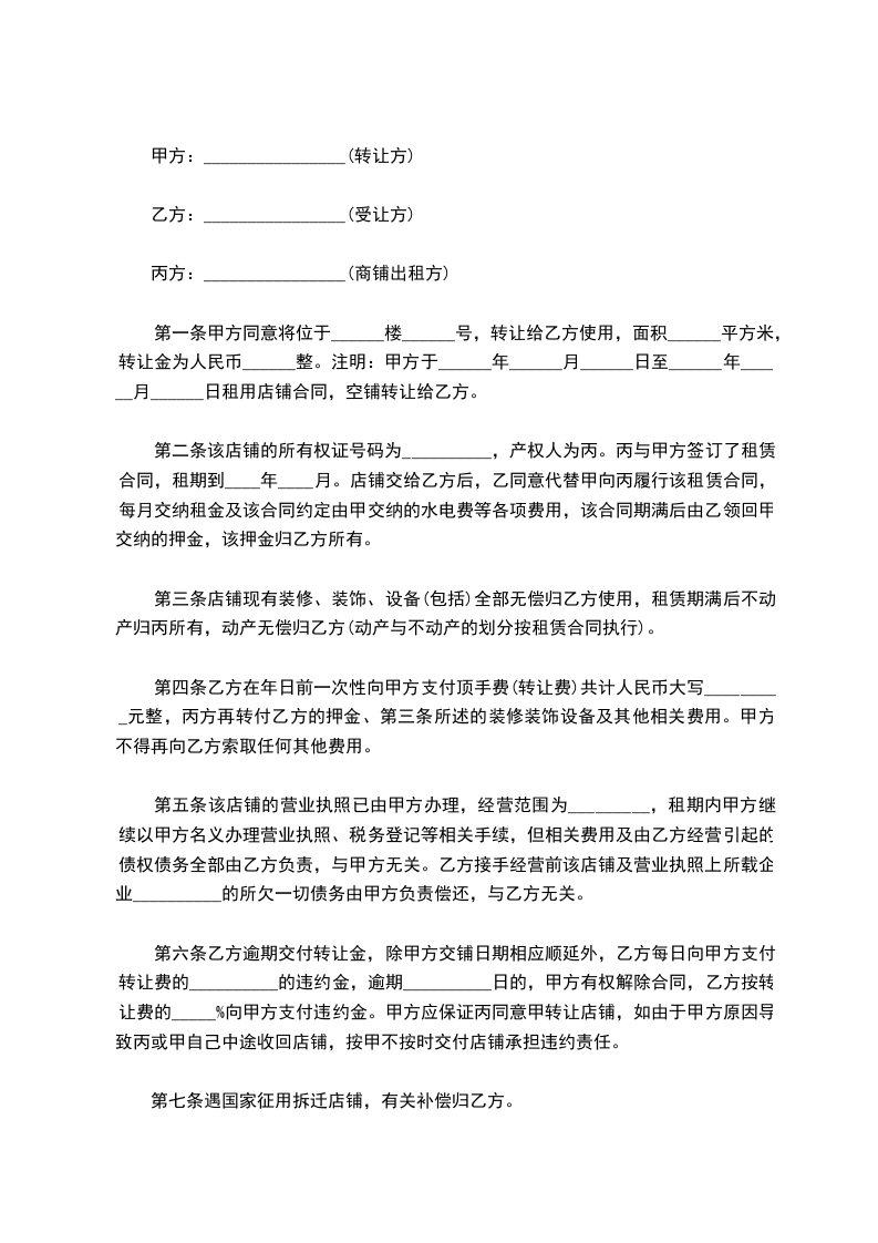 1.该店转让金为___________元(大写______________整)。