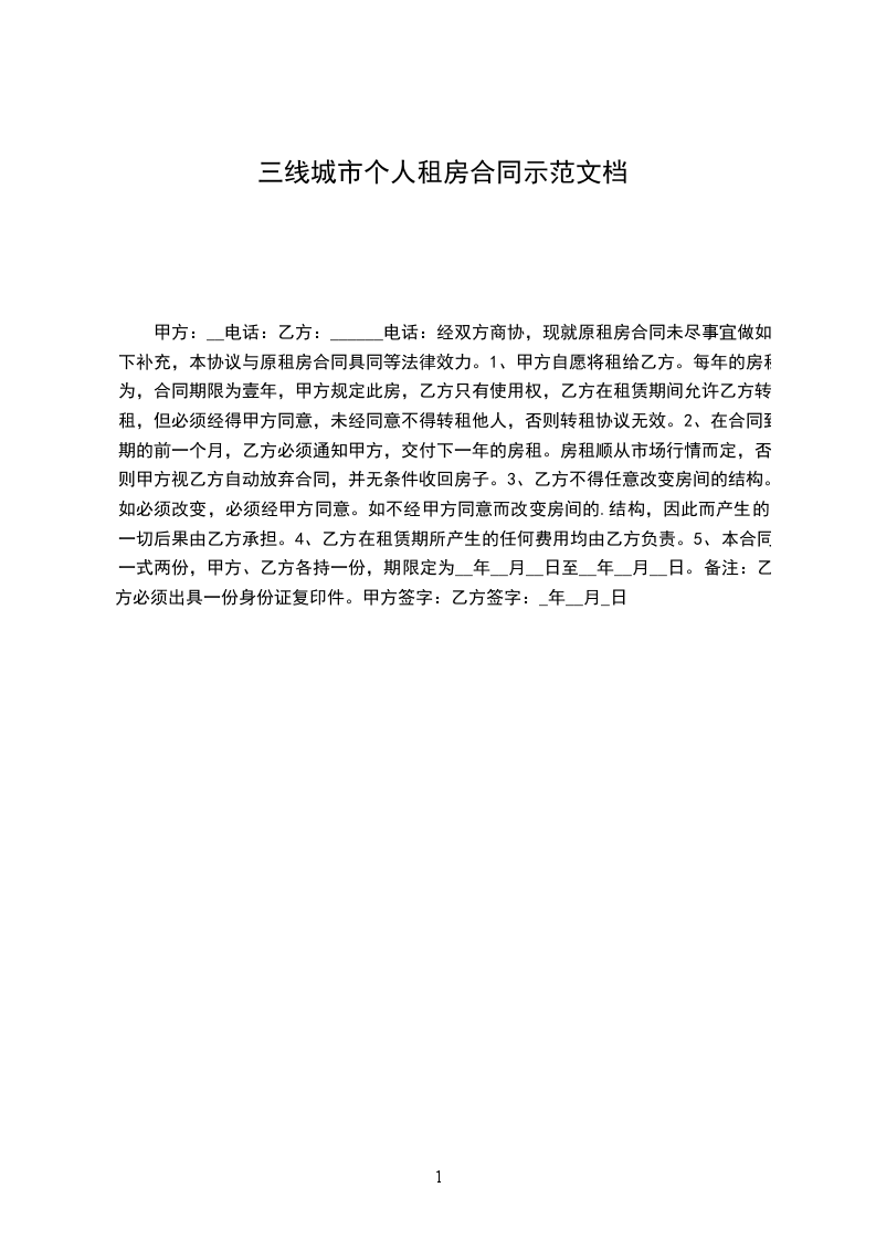 经双方商协,现就原租房合同未尽事宜做如下补充,本协议与原租房合同具同等法律效力。