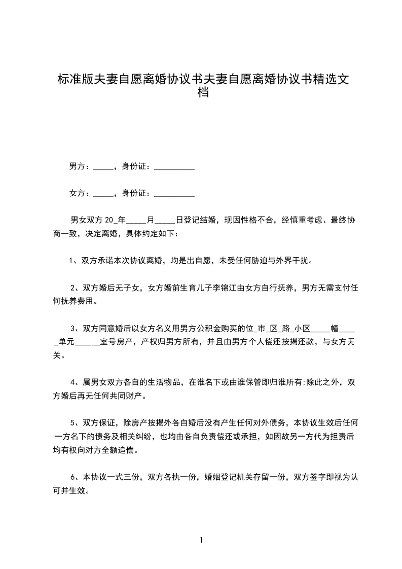 男方与女方婚后_年__月_日生育一子,名。因性格严重不合致使夫妻感情破裂,已无和好可能,现经夫妻双方自愿协商达成一致意见,订立离婚协议如下: