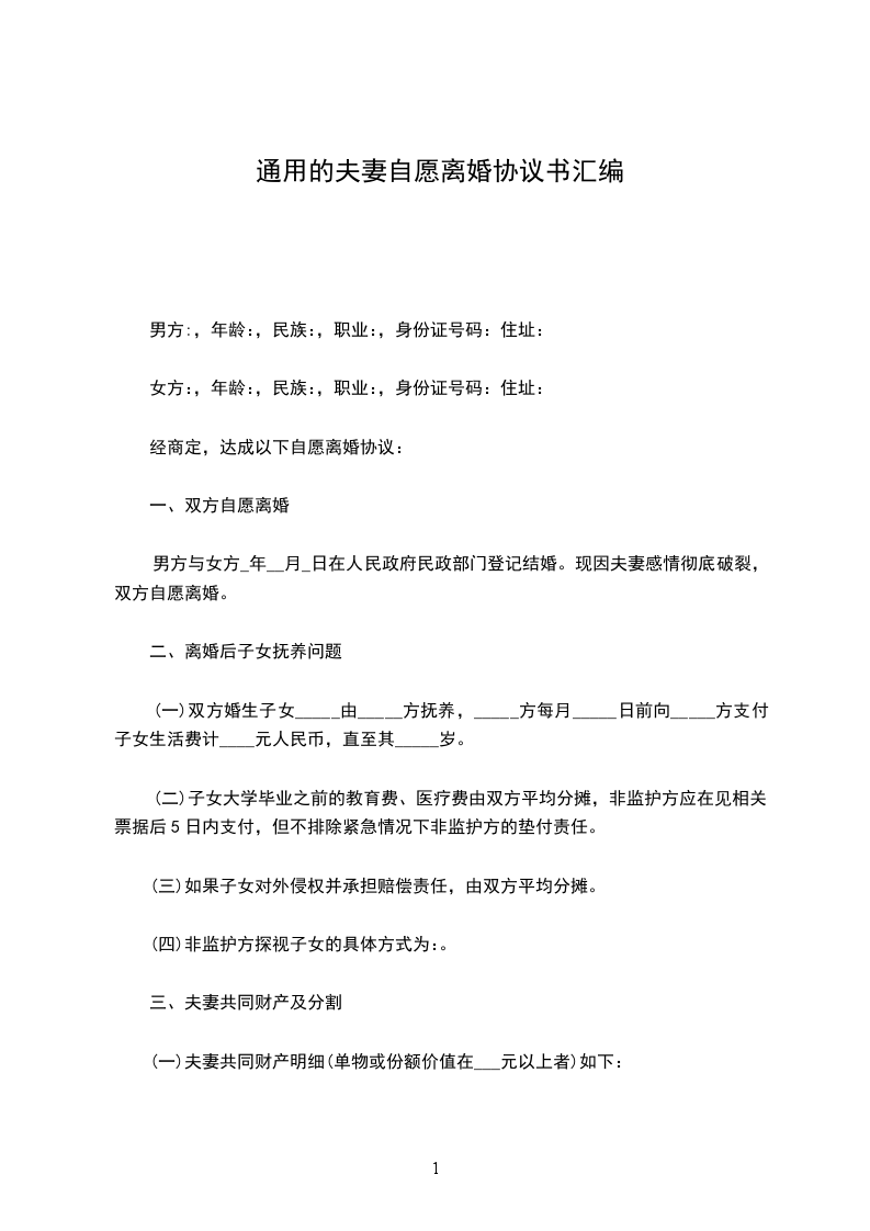 一、双方自愿离婚
