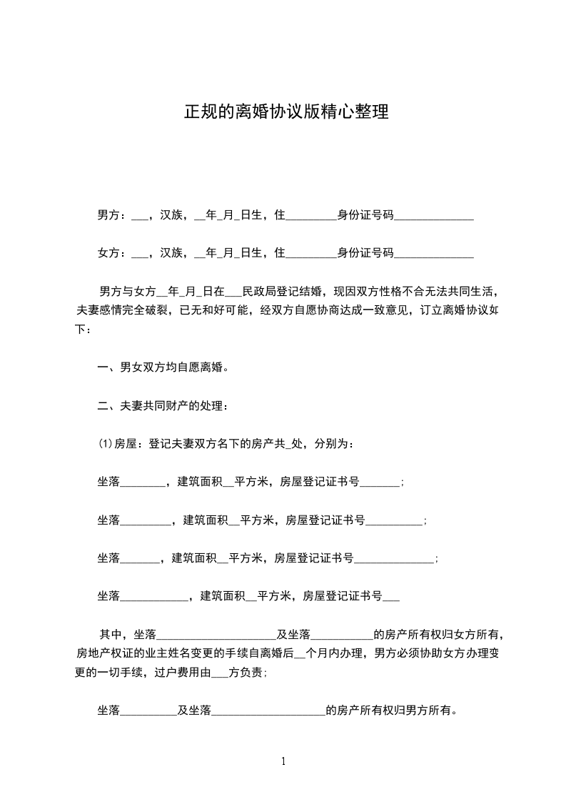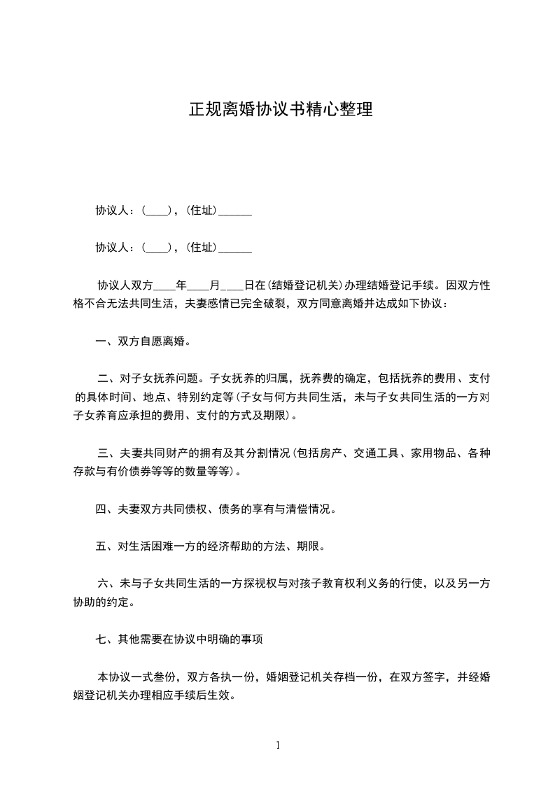 男方______与女方______现因夫妻感情彻底破裂自愿离婚,经双方商定,对有关事项达成以下协议: