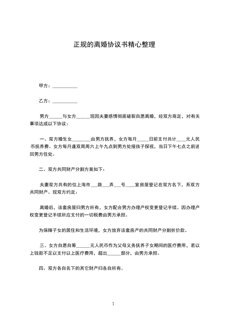 夫妻双方共有的位上海市___路___弄___号____室房屋登记在双方名下,系双方共同财产。现双方约定:
