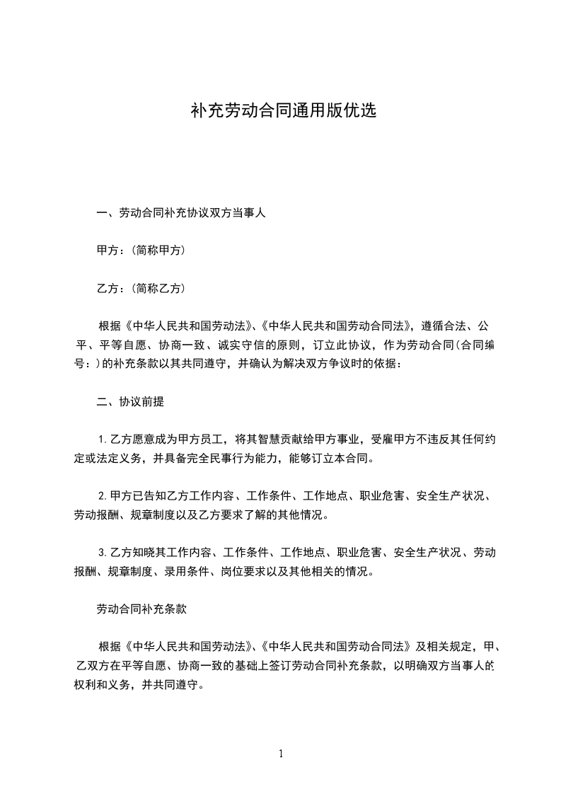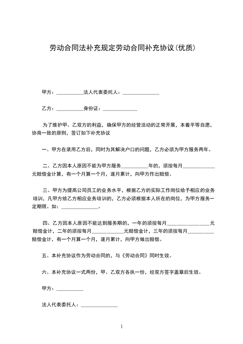 甲乙双方经友好协商,对劳动合同的履行,达成如下补充协议: