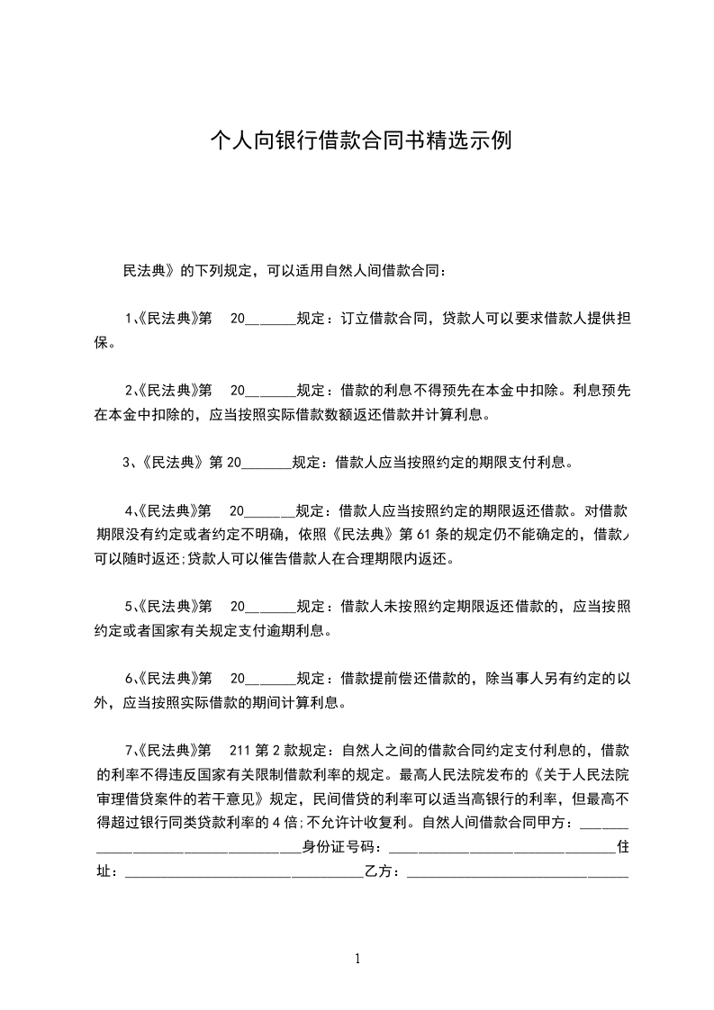 7、《民法典》第211第2款规定:自然人之间的借款合同约定支付利息的,借款的利率不得违反国家有关限制借款利率的规定。最高人民法院发布的《关于人民法院审理借贷案件的若干意见》规定,民间借贷的利率可以适当高银行的利率,但最高不得超过银行同类贷款利率的4倍;不允许计收复利。自然人间借款合同甲方:___________________________________身份证号码:_______________________________住址:_________________________________乙方:___________________________________身份证号码:_______________________________住址:_________________________________甲、乙双方在自愿的基础上经充分协商,达成以下借款合同条款: