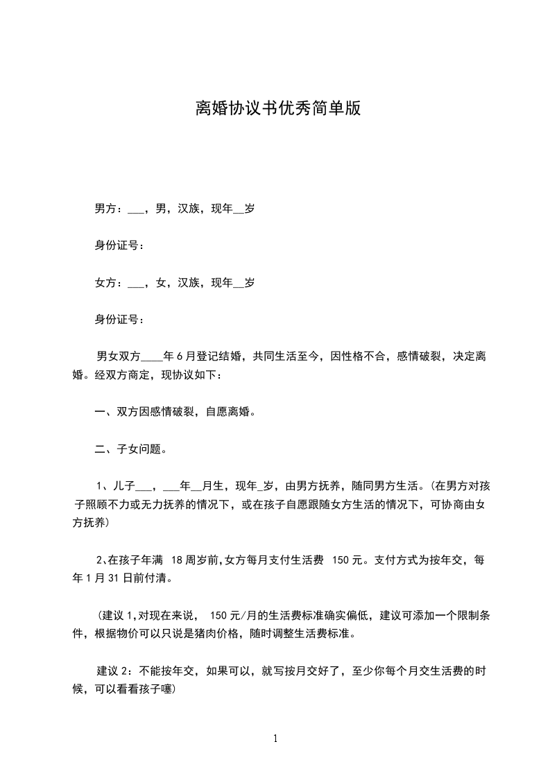(建议,在此应该加上一条,如果男女双方再婚,则再婚对象,无权过问本协议的执行情况,更无权提出任何超出本协议以外的任何要求,无论合理与否)