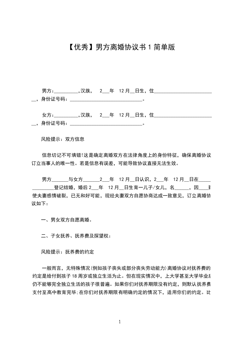男方:___,男,汉族,现年__岁