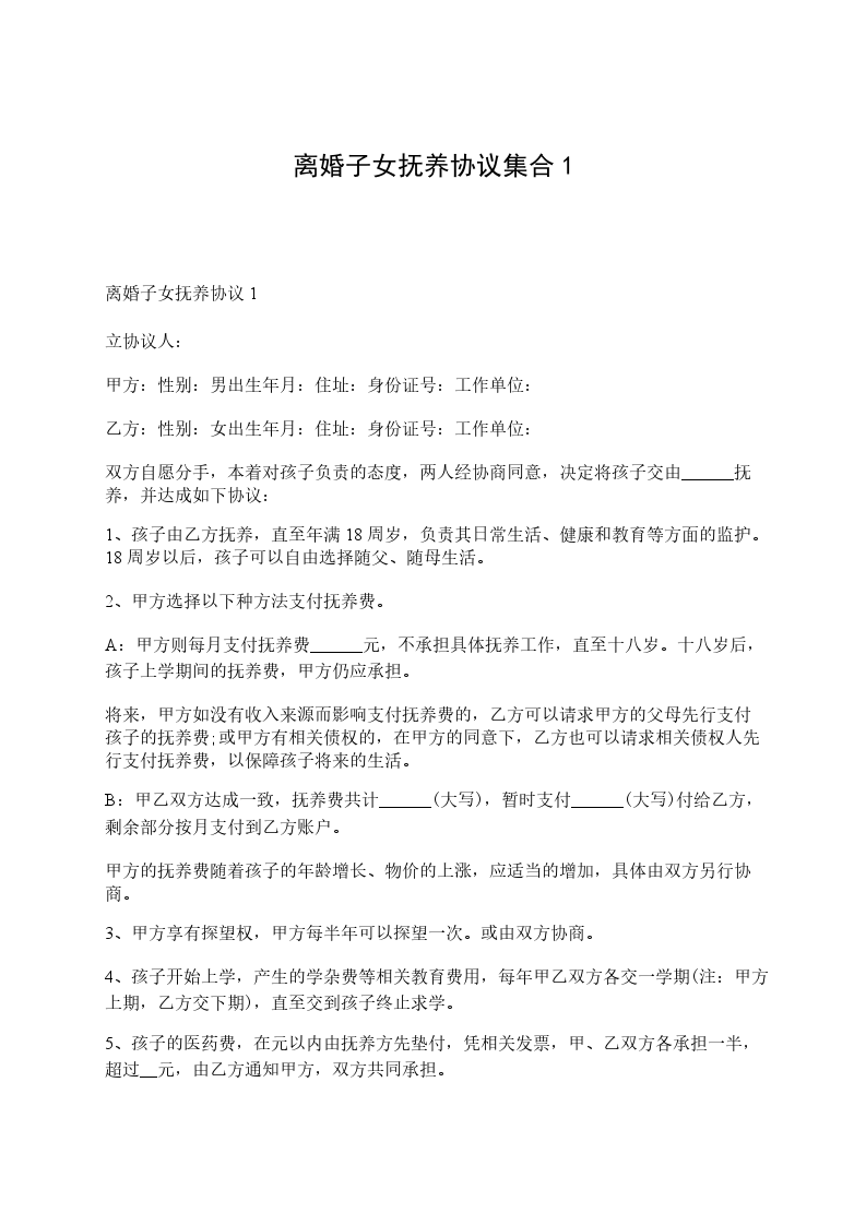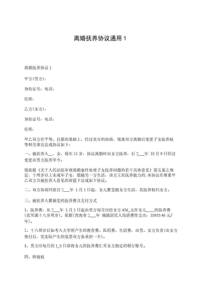 离婚抚养协议1
