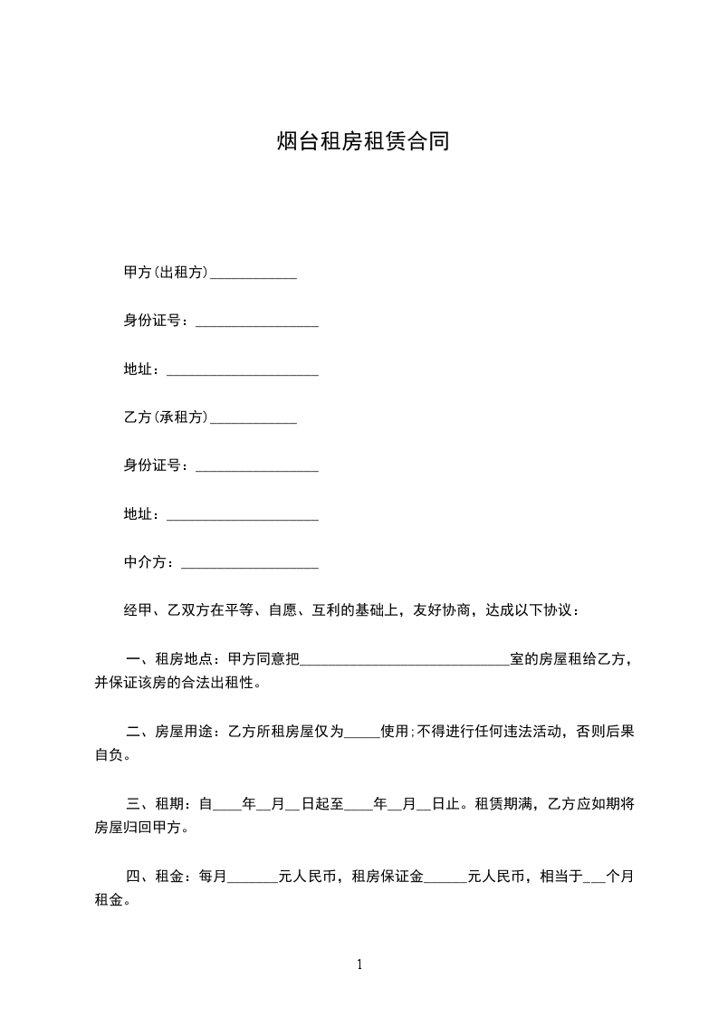 一、租房地点:甲方同意把_____________________________室的房屋租给乙方,并保证该房的合法出租性。