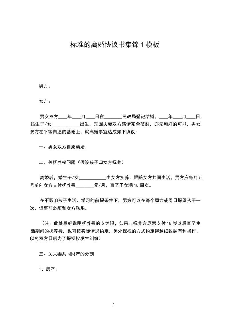 1、儿子___由男方抚养,随同男方生活,抚养费(含抚养费、教育费、医疗费)由男方全部负责。