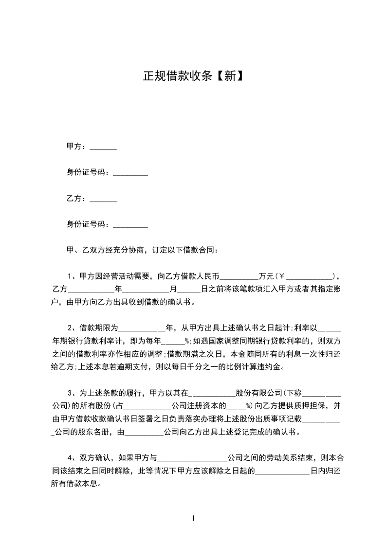 1.甲方向乙方借款人民币(大写)___万元,规定用