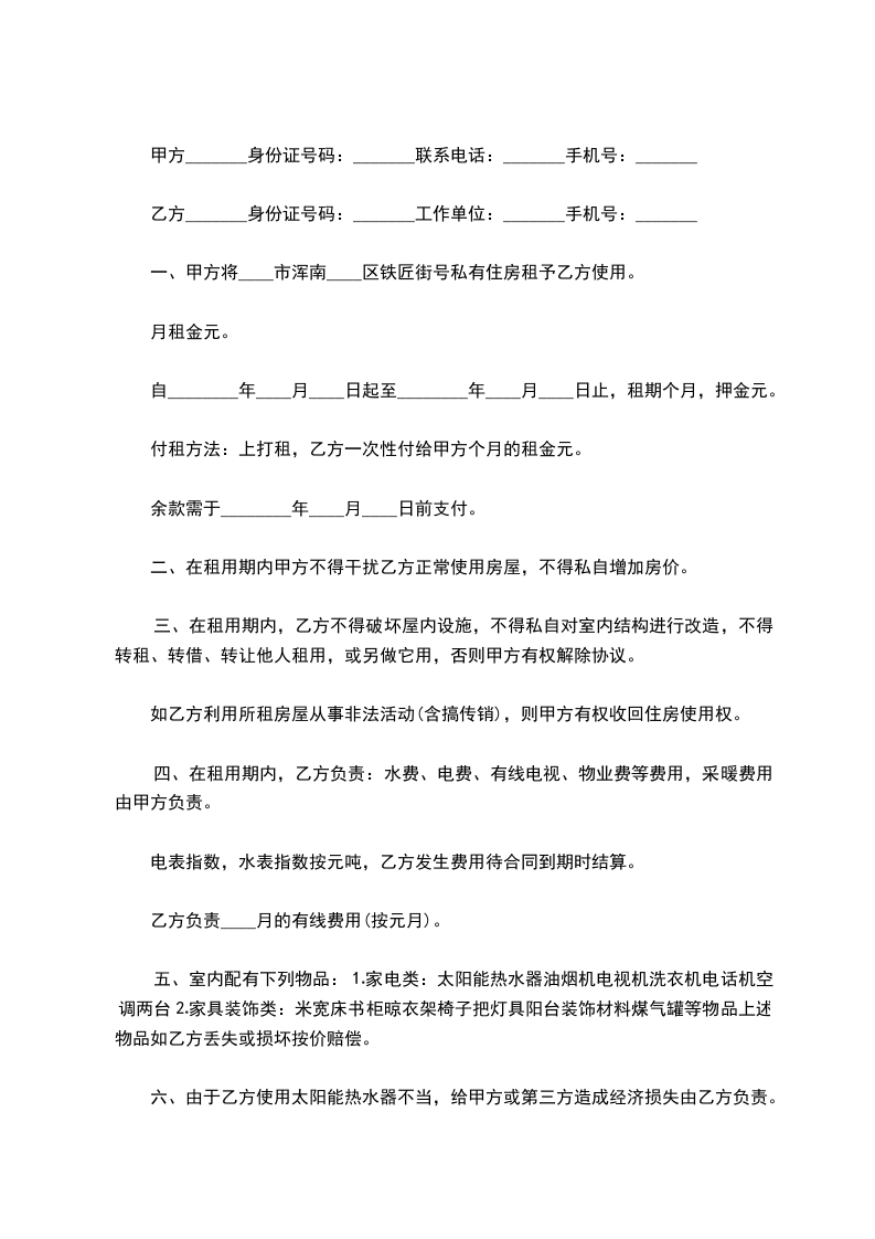 5、租用期内,乙方有下列情形之一的甲方可以终止合同,收回房屋使用权、乙方需担全部责任,并赔偿甲方损失。