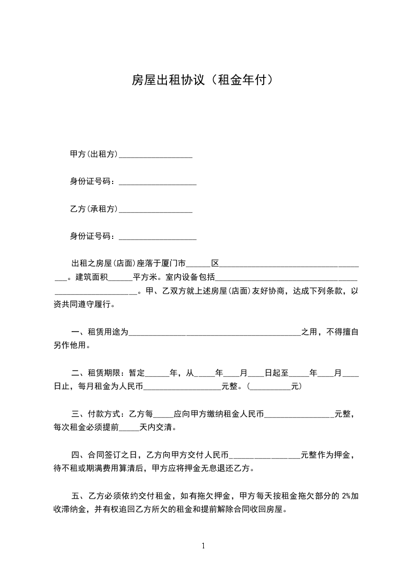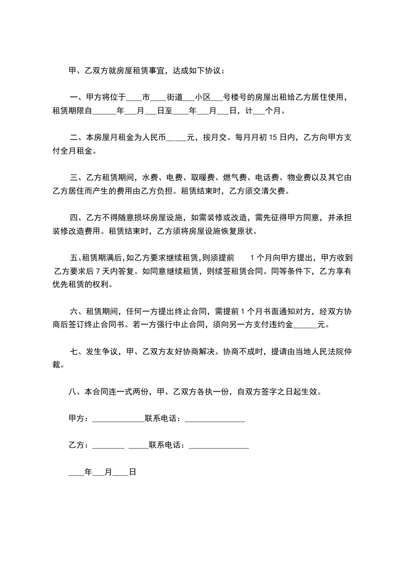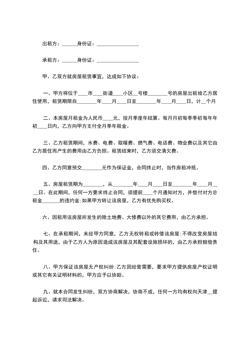 2、每月租金500元,若租期不满三年,乙方退房,甲方不退租金和押金;
