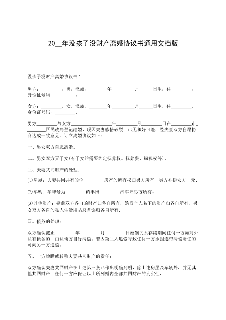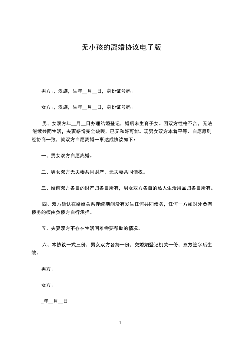 协议人双方_____年_____月_____日在_____市_____区民政局办理了结婚登记手续,现在因双方性格不合确无法共同生活,夫妻感情已完全的破裂,现双方就自愿离婚一事达成一致协议: