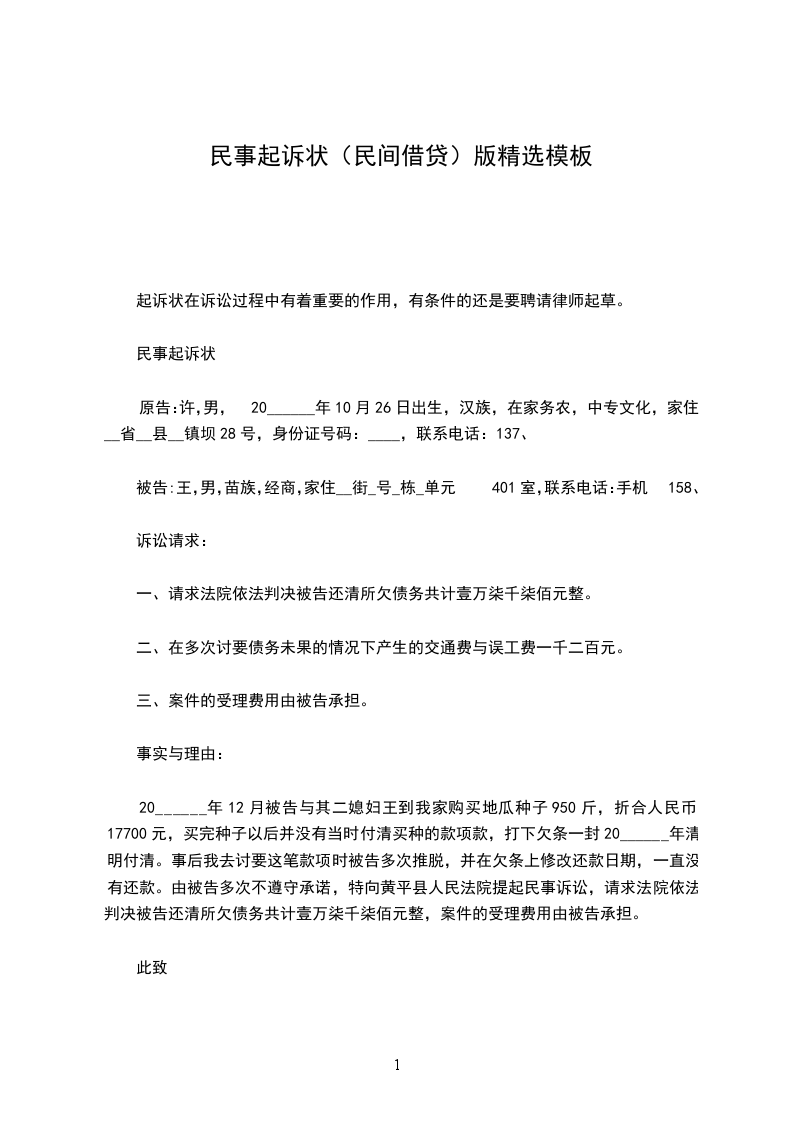 民事起诉状