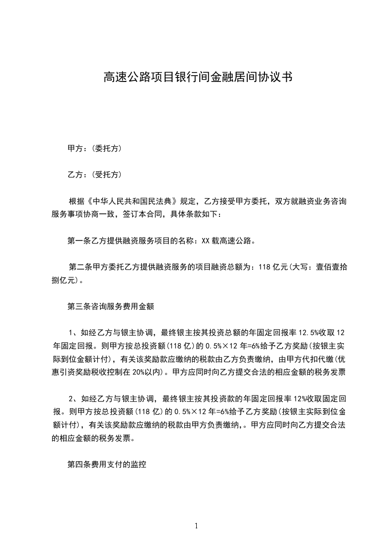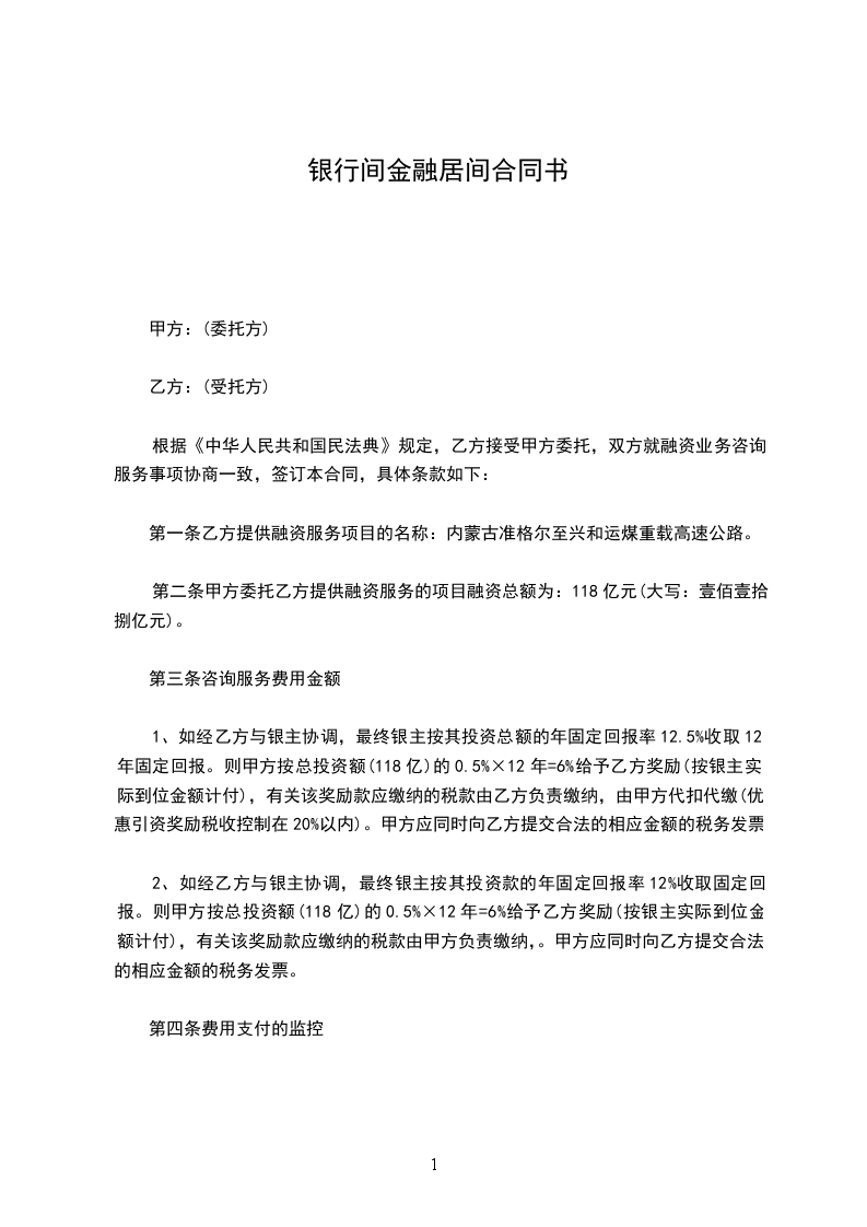 第一条乙方提供融资服务项目的名称:内蒙古准格尔至兴和运煤重载高速公路。