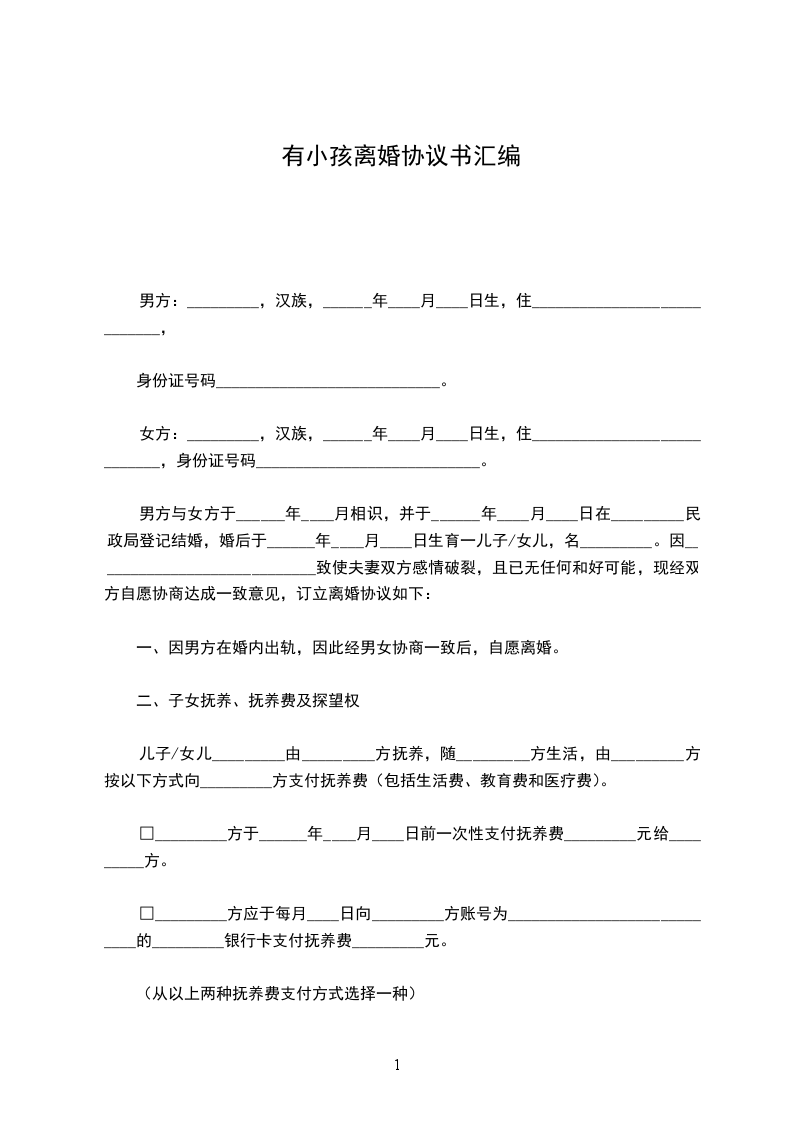 没孩子离婚协议书5男方:______,男,汉族,__年__月__日生,住,身份证号码: