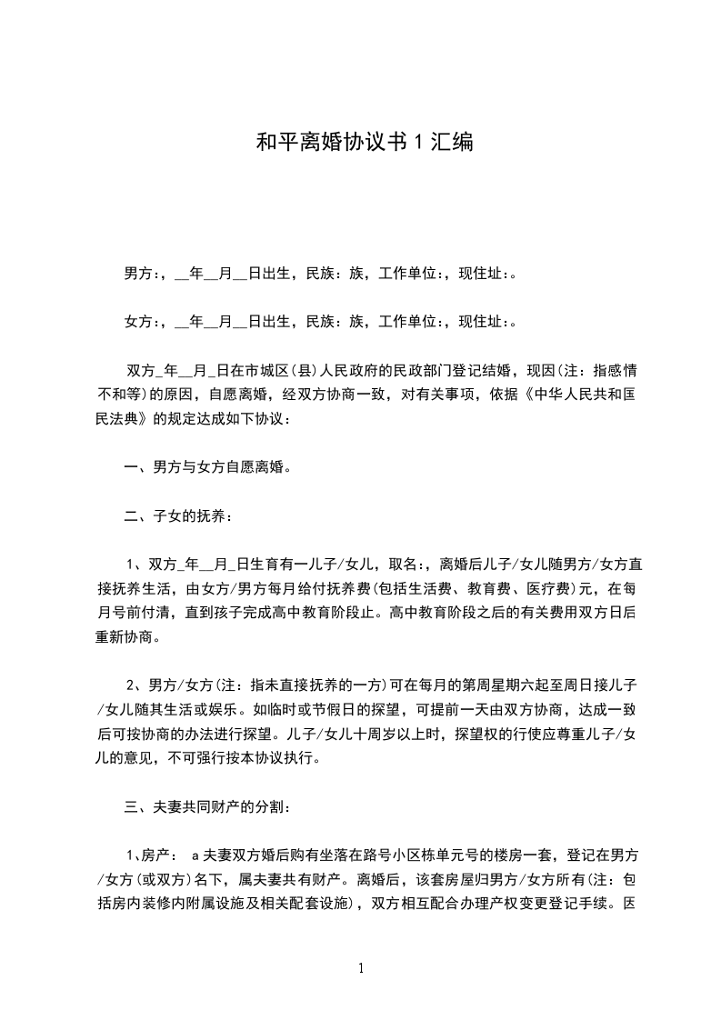 男方:,__年__月__日出生,民族:族,工作单位:,现住址:。